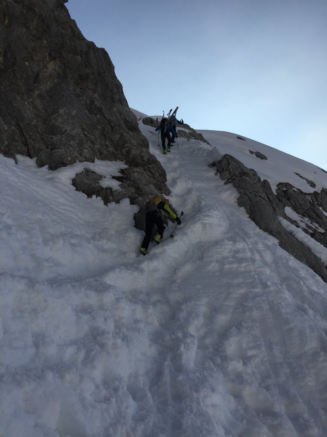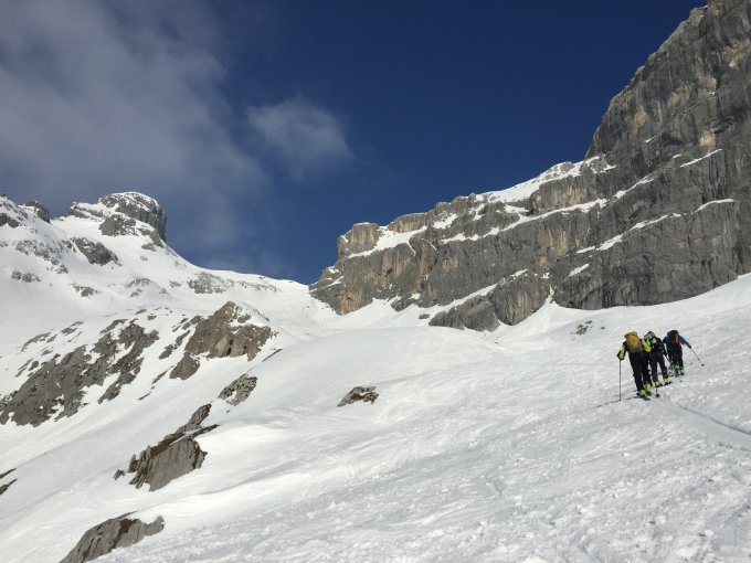 Wir waren etwas früh unterwegs, entsprechend holprige Abfahrt. Laut Bericht einer späteren Gruppe soll der Firn jedoch auch im Tagesverlauf nicht wirklich besser geworden sein. Pulver hats nirgends mehr. Passage Gemstobel problemlos. Viel Wind im oberen Bereich und viele Leute im Gebiet - aber trotzdem immer wieder sehr lohnend!