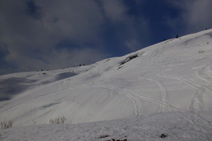 ab Schlund weiterhin gut machbar, unterhalb der Waldschneise muss zunehmend mit aperen Stellen gerechnet werden.