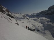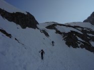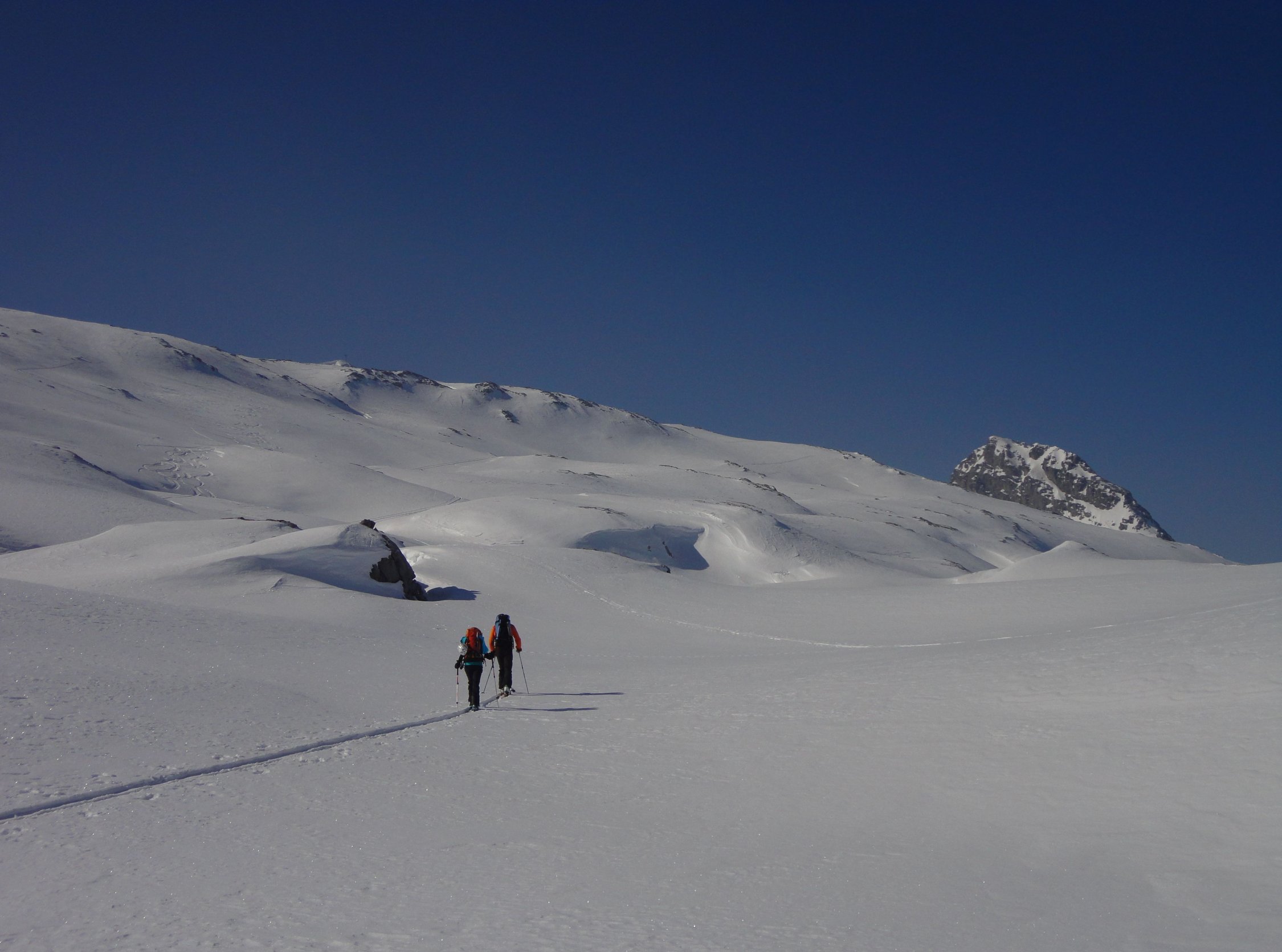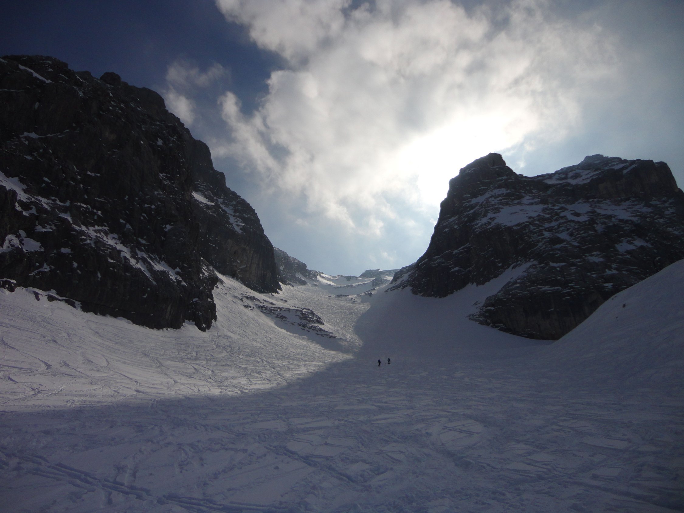 Start gegen 8.00 h in Partnun. Aufstieg im unteren Teil der Südosthänge noch kaum aufgefirnt (Harscheisen hilfreich), oben beim steilen Ausstieg aus dem letzten Kessel schon leicht sulzig.