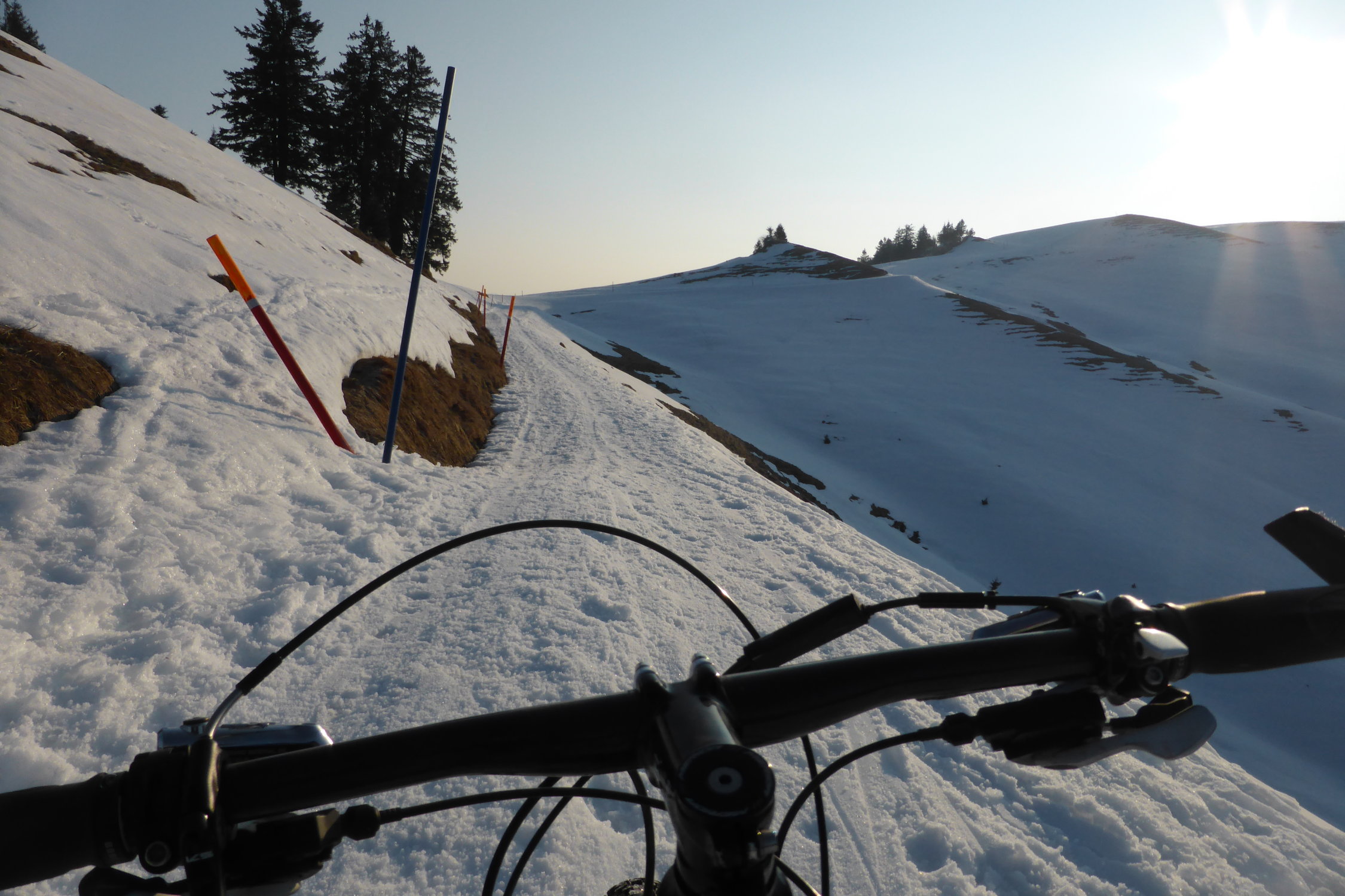 Am Morgen hartgefrohren, so dass es mit dem Bike gut zu fahren war.