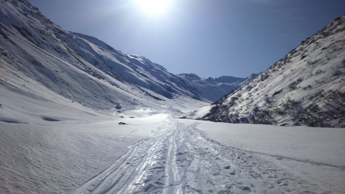 Spur am Morgen glasig, aber trotzdem einigermaßen griffig, keine Harscheisen nötig.