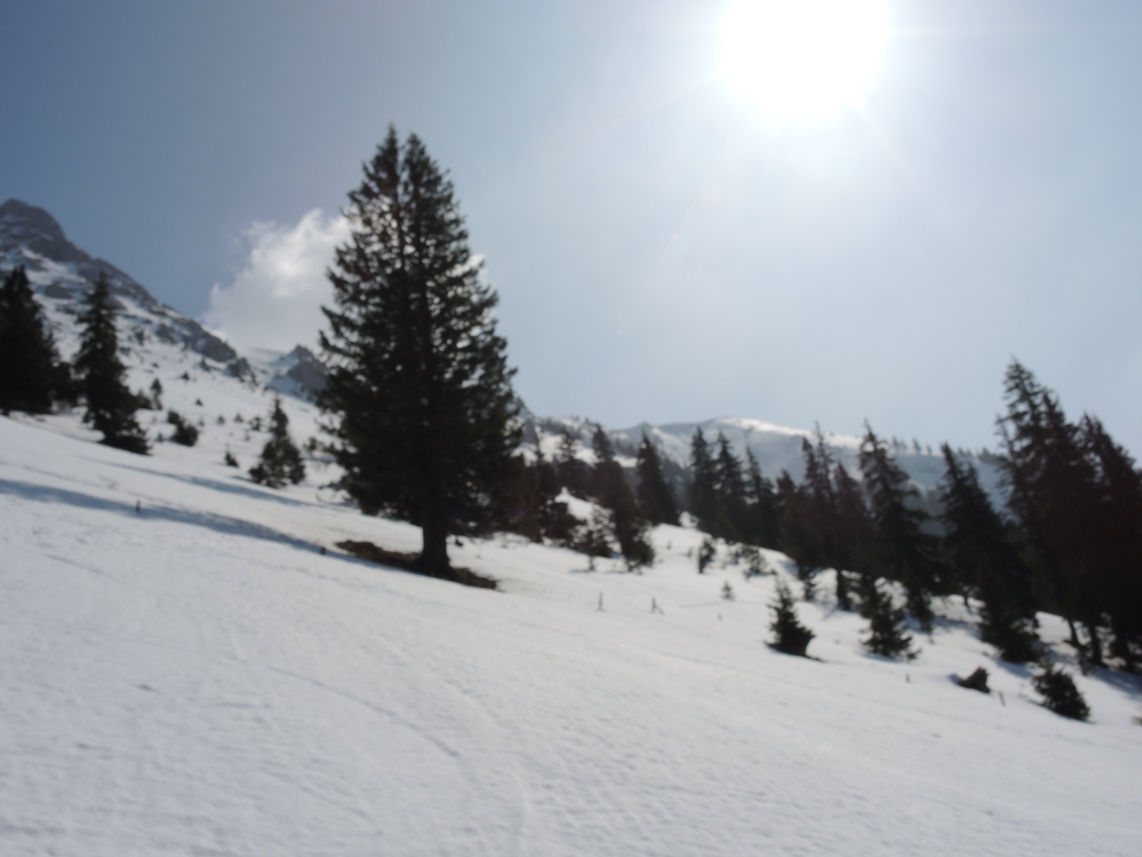 ausgezeichnet, Abfahrt 9.30 über die Ostflanke bis ca 1900m (Sulzschnee), dann Querung Richtung Chummli und Abfahrt bis zur Vorderen Riechsalz (Nordseitig noch Pulverschnee!) Dann Aufstieg auf die Märe und ca 12.30 über die Westflanke und den Spittelgantrich zurück zum Parkplatz im Muscherenschlund 1133m