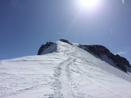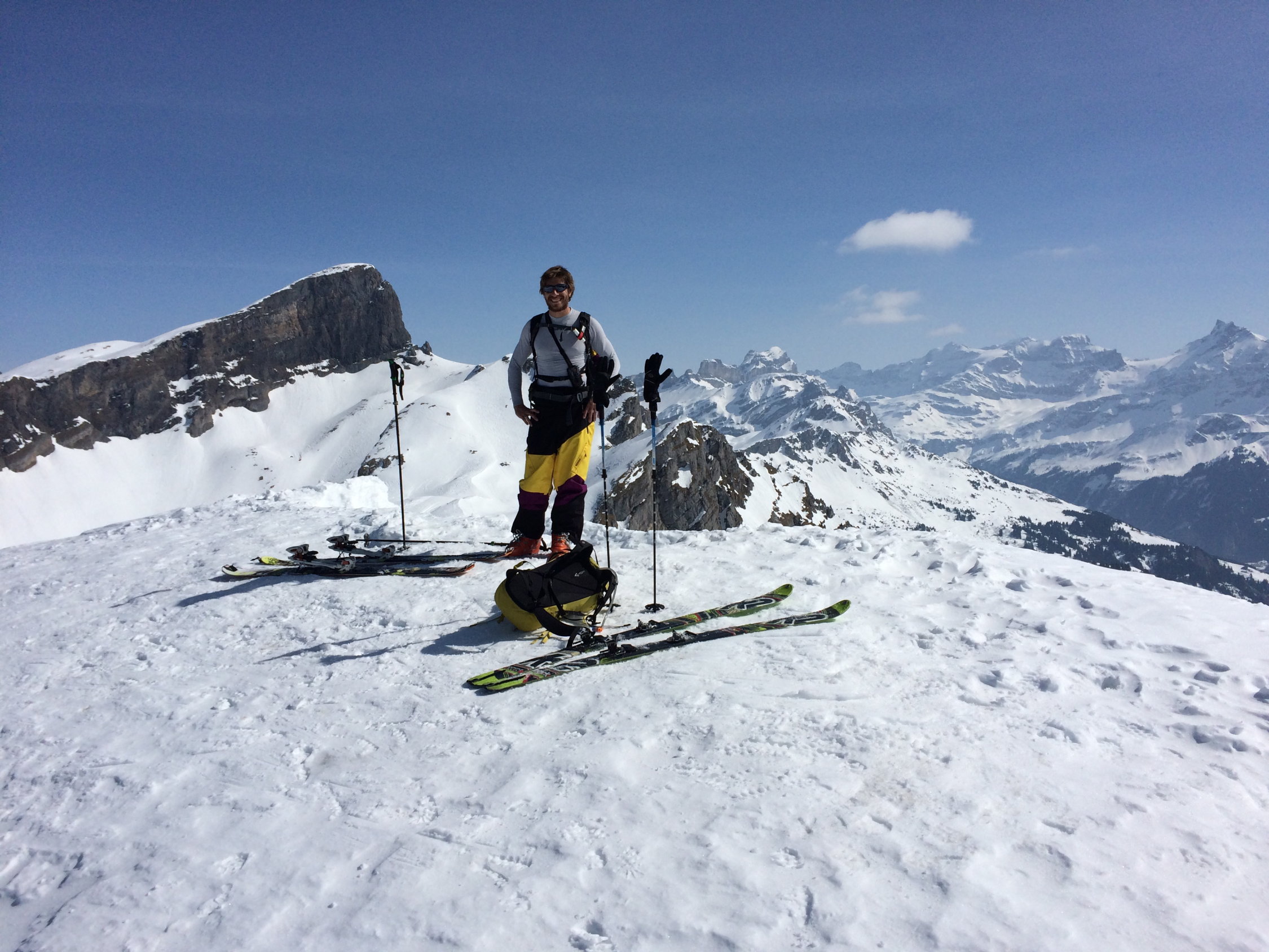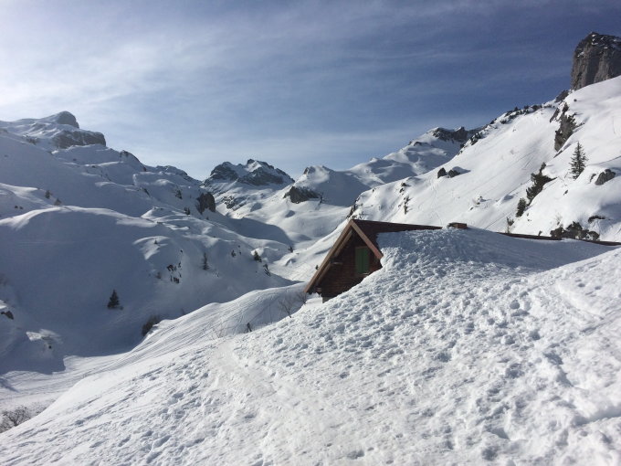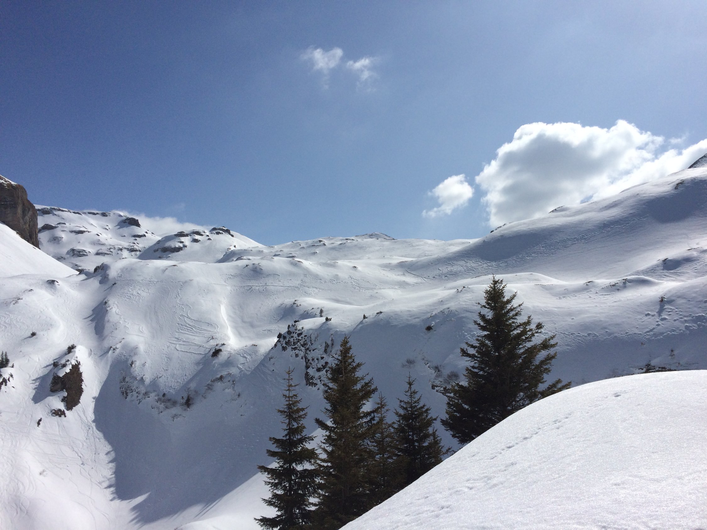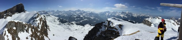 Genug Schnee im Gebiet. Leider recht windgepresst. Ein paar wenige Meter schwerer Restpulverschnee in steilen Nordabfahrten gefunden. Sonst von allem etwas. Aufstiege zu den Gipfeln sind momentan problemlos machbar und gut gespurt. Nur am Morgen noch recht hart, weshalb ggf. Harscheisen nützlich sind. Ging heute aber auch ohne ganz gut.