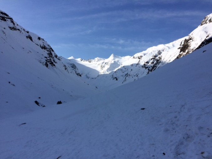 Gesamtheitlich recht gut. Start um 6:25 am Parkplatz stausee, Zustieg bis läntahütte auf teils guter Spur, morgens etwas glasig, auf dem Rückweg nach pansche Pause läntahütte (13:00) lief es auf der Spur erstaunlich gut, viel Schiebearbeit, kein tragen. Selten in der Spur eingebrochen, trotz T-Shirt Temperaturen.Aufstieg läntagletscher zuunterst tiefer triebschnee, mittlerer Teil ca. 20 cm tiefer triebschnee auf tragendem Untergrund. Oben hart, nur im Gipfelbereich etwas windbearbeitete Oberfläche. Keine Spalten sichtbar. Abfahrt war angenehm, fast schon schön.