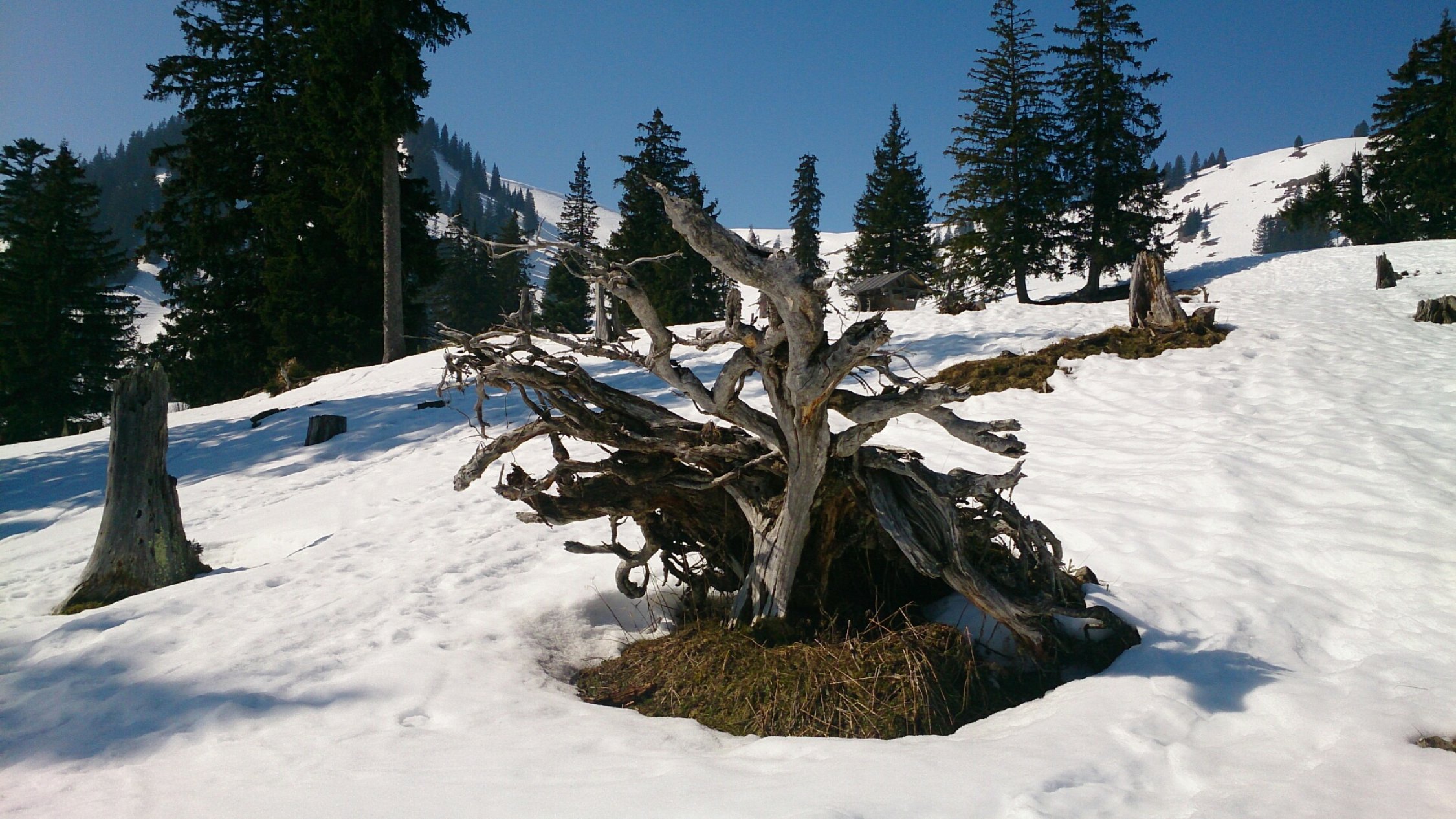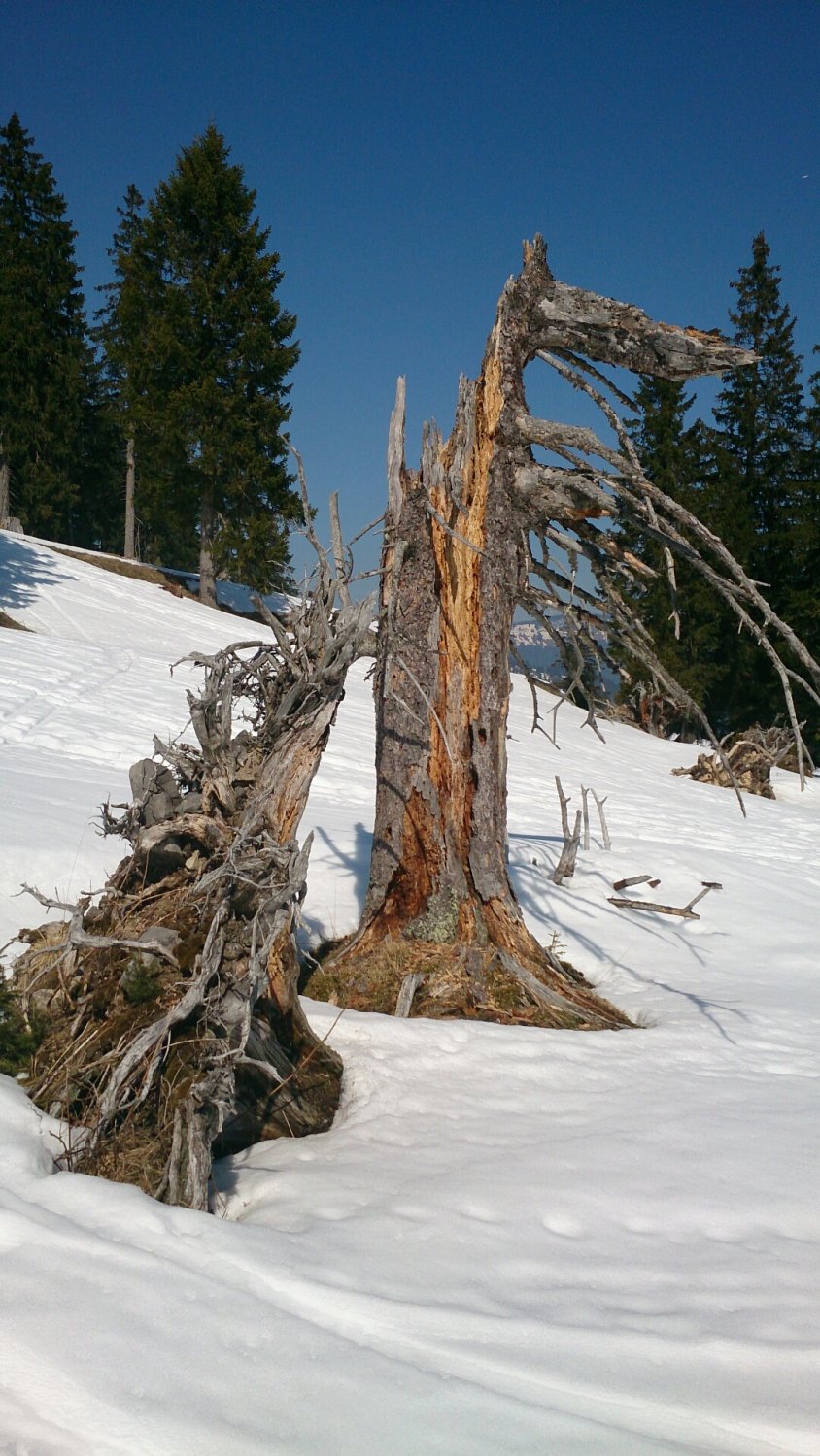 Beim Aufstieg konnte ich mich noch mit Ski durchschmuggeln.... bei der Abfahrt musste ich ca. 300 m tragen. Oben würde der Schnee noch eine ganze weile reichen..