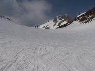 Im Aufstieg gefroren. Abfahrt: Oben hart, Mitte super, Unten weich. Wie es halt im Frühling auf dieser Höhe ist.