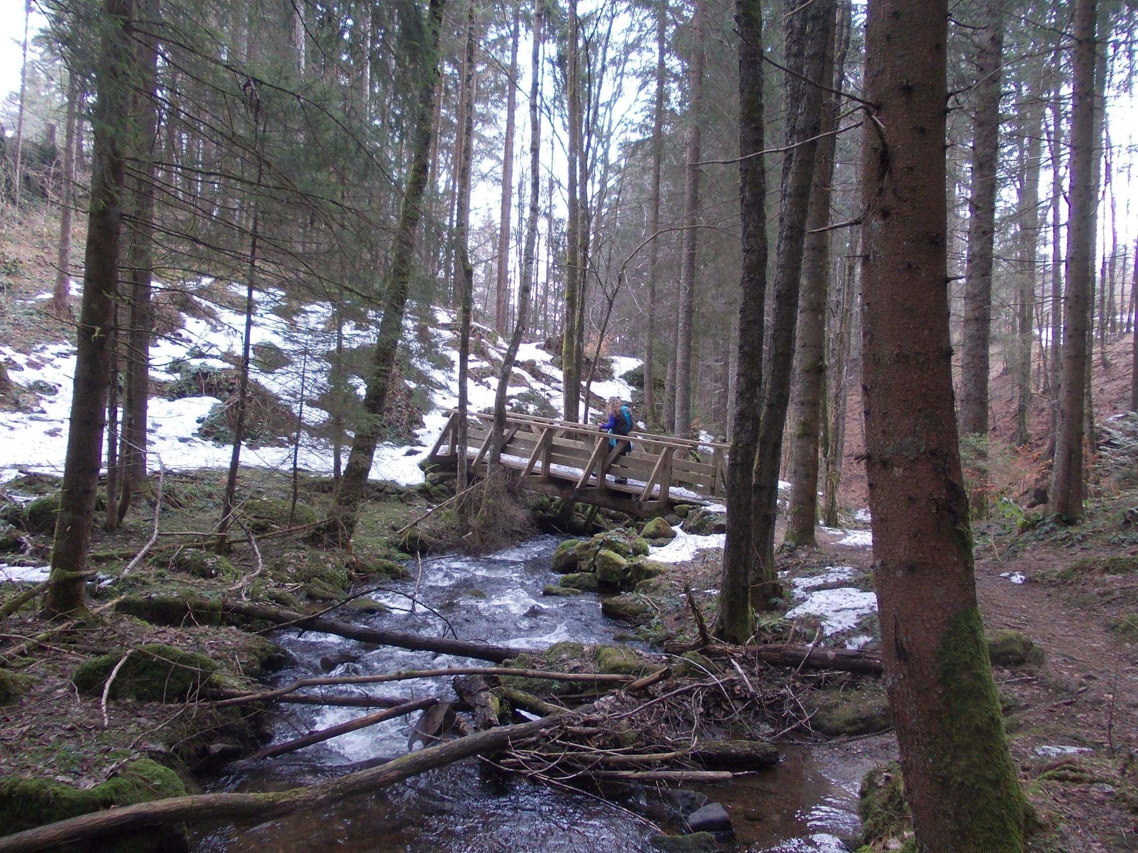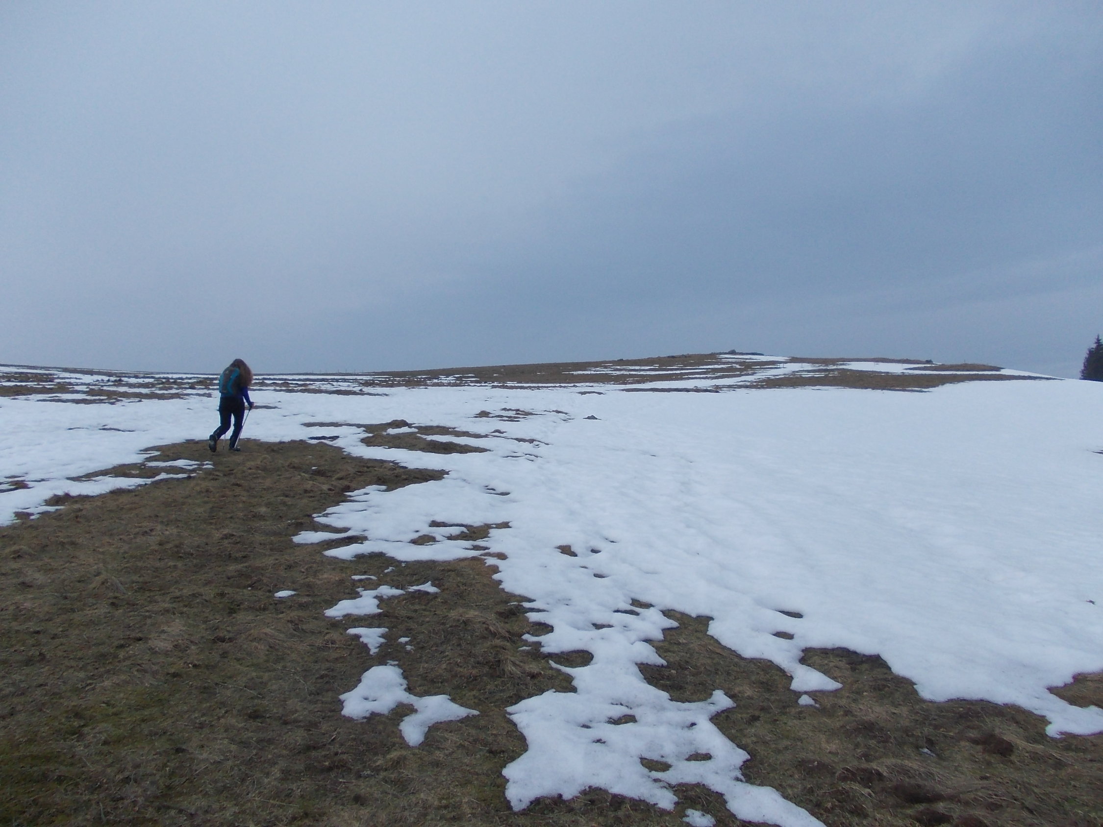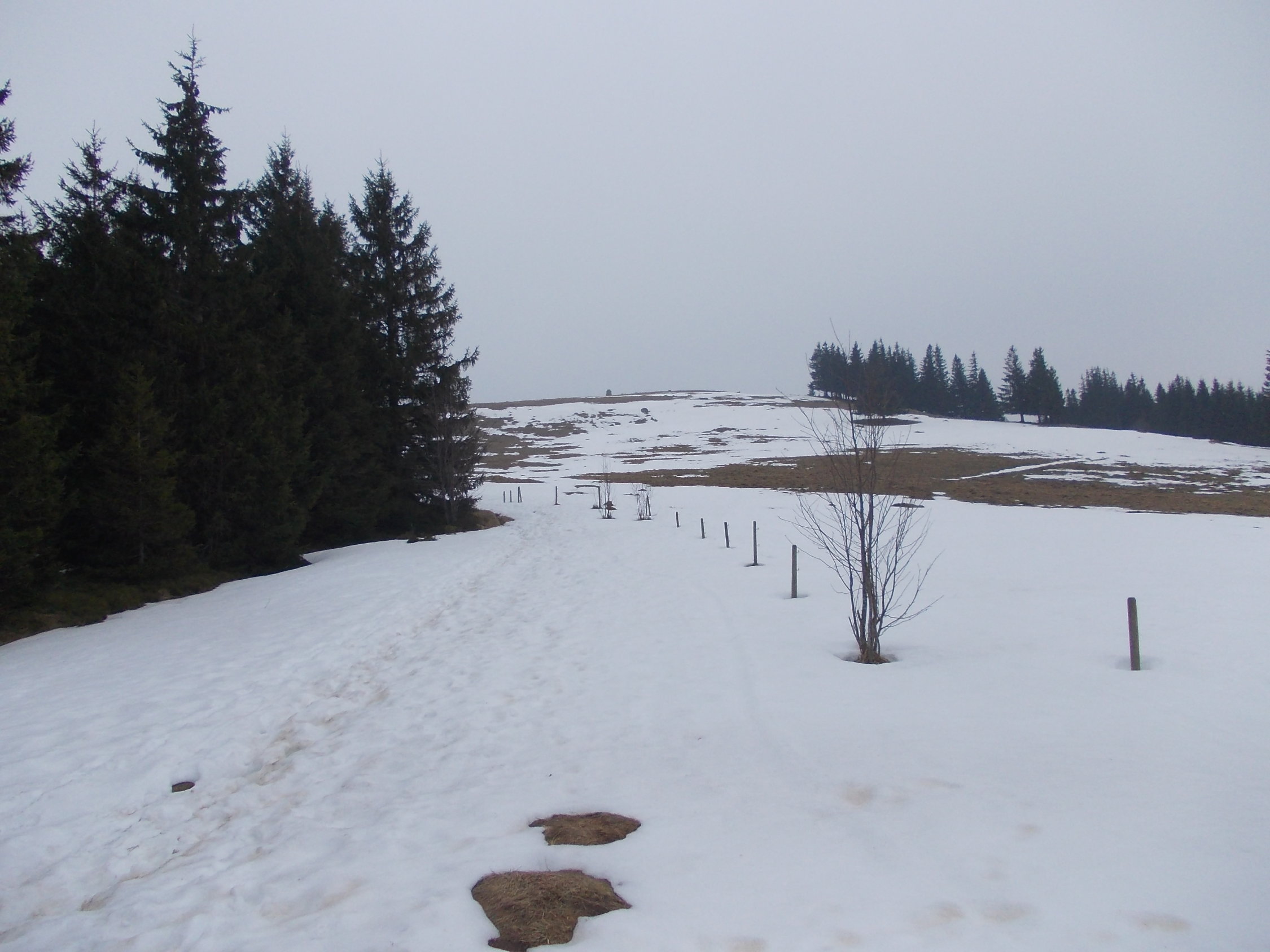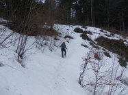Ein Wechsel aus Schnee- und aperen Passagen. Die Entscheidung, für diese Wanderung heute die Schneeschuhe im Auto zu belassen, war richtig, denn die Schneehöhen sind nicht mehr allzu mächtig und aufgrund der heute geringen Sonneneinstrahlung trug die Schneedecke meistens. Wir fanden insgesamt mehr apere, als schneebedeckte Weganteile vor.