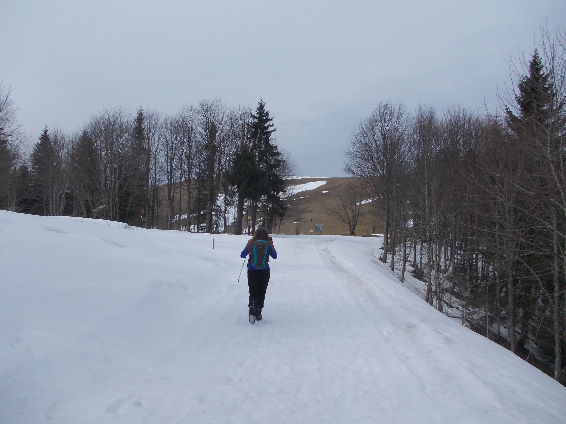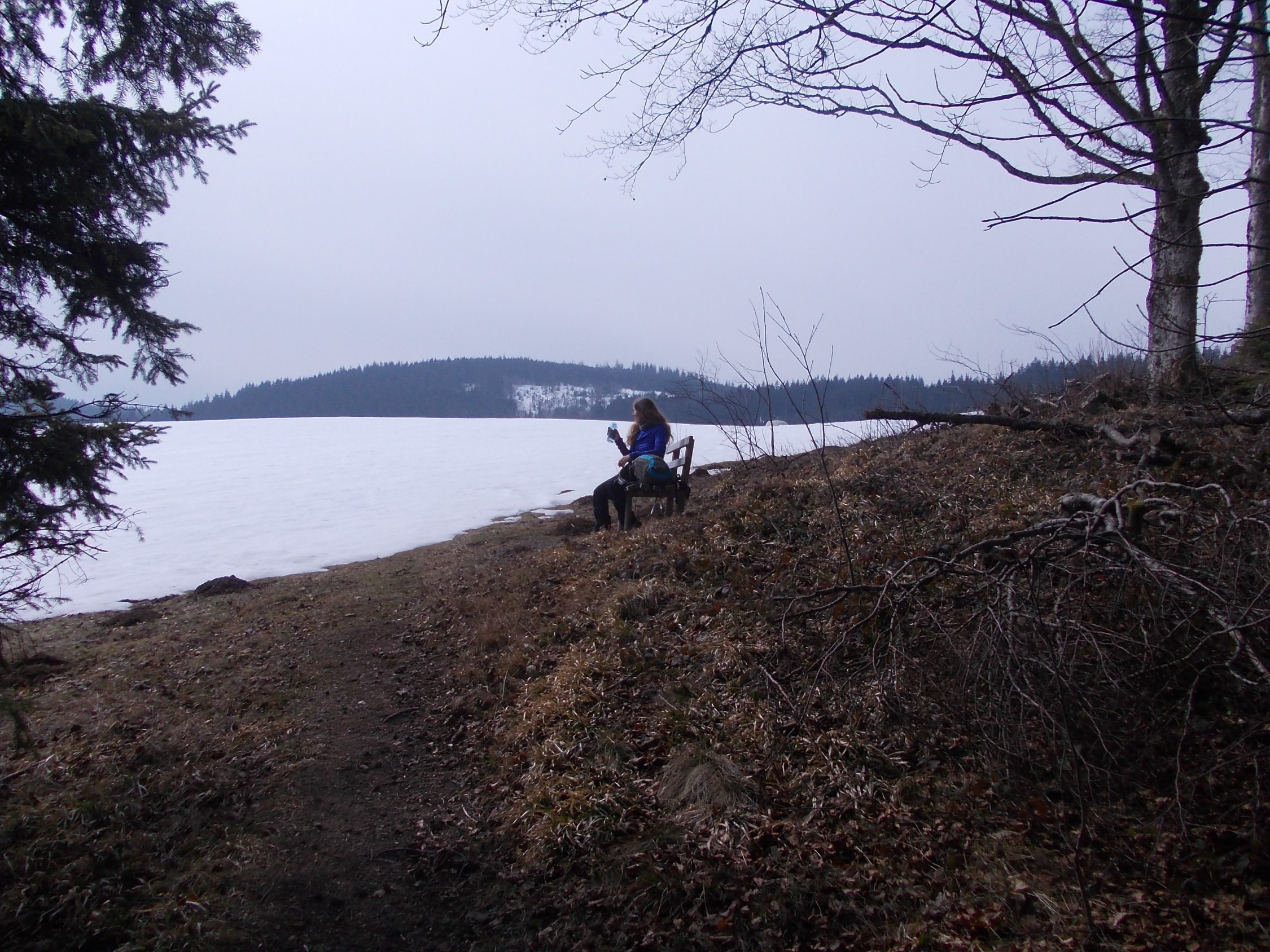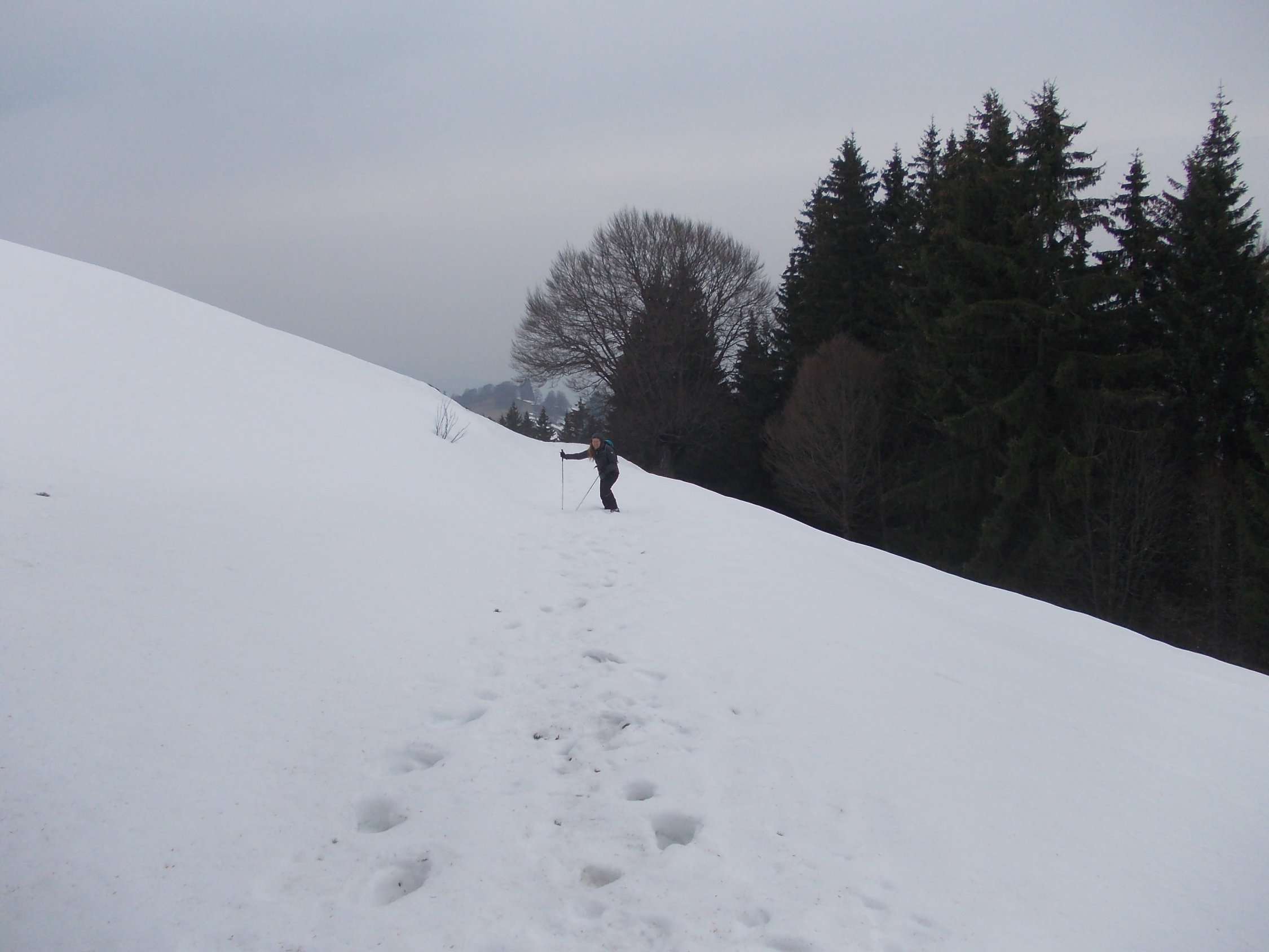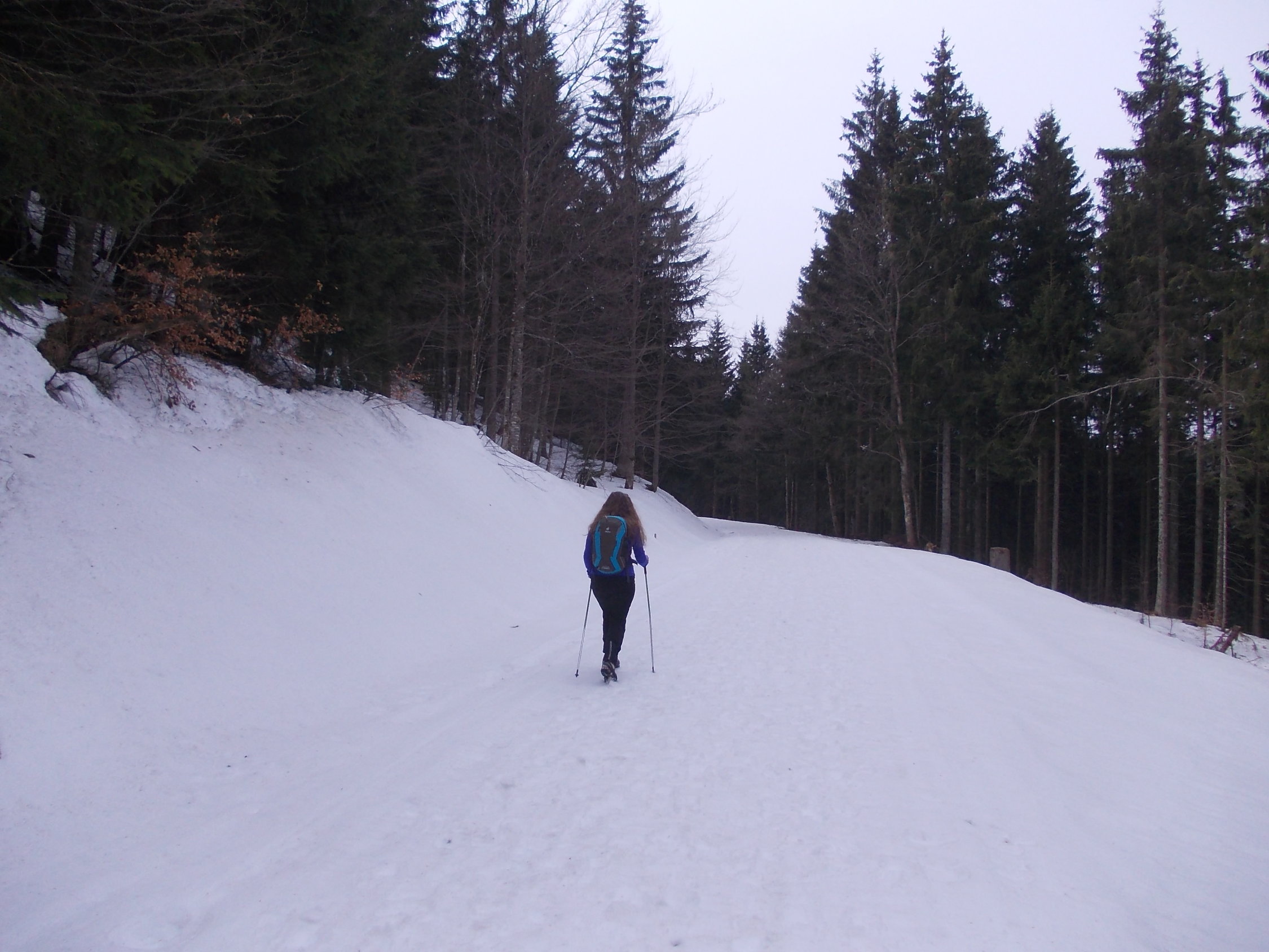 Ein Wechsel aus Schnee- und aperen Passagen. Die Entscheidung, für diese Wanderung heute die Schneeschuhe im Auto zu belassen, war richtig, denn die Schneehöhen sind nicht mehr allzu mächtig und aufgrund der heute geringen Sonneneinstrahlung trug die Schneedecke meistens. Wir fanden insgesamt mehr apere, als schneebedeckte Weganteile vor.