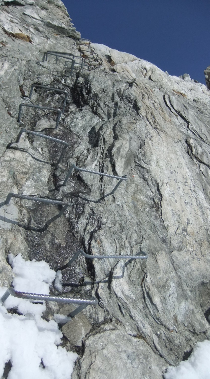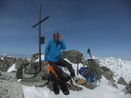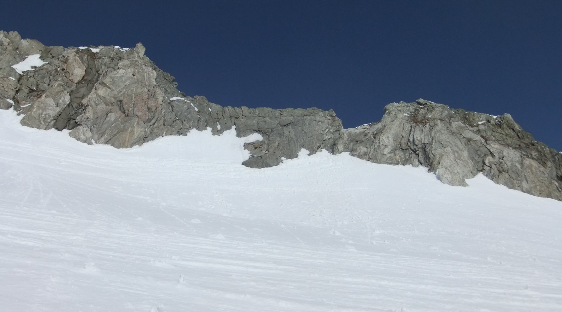Abstieg von der Felslücke zum Brunnifirn und letztes Stück zum Gipfel hinauf mit Steigeisen.