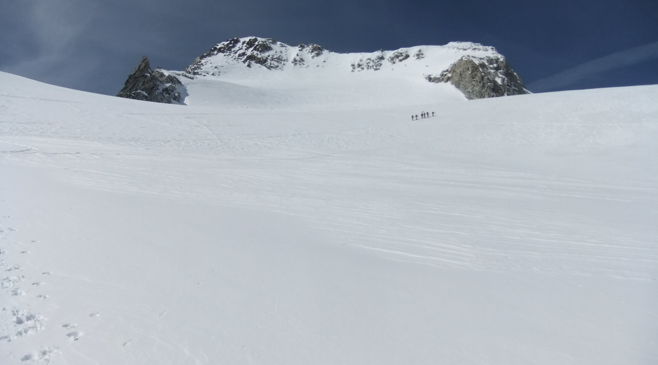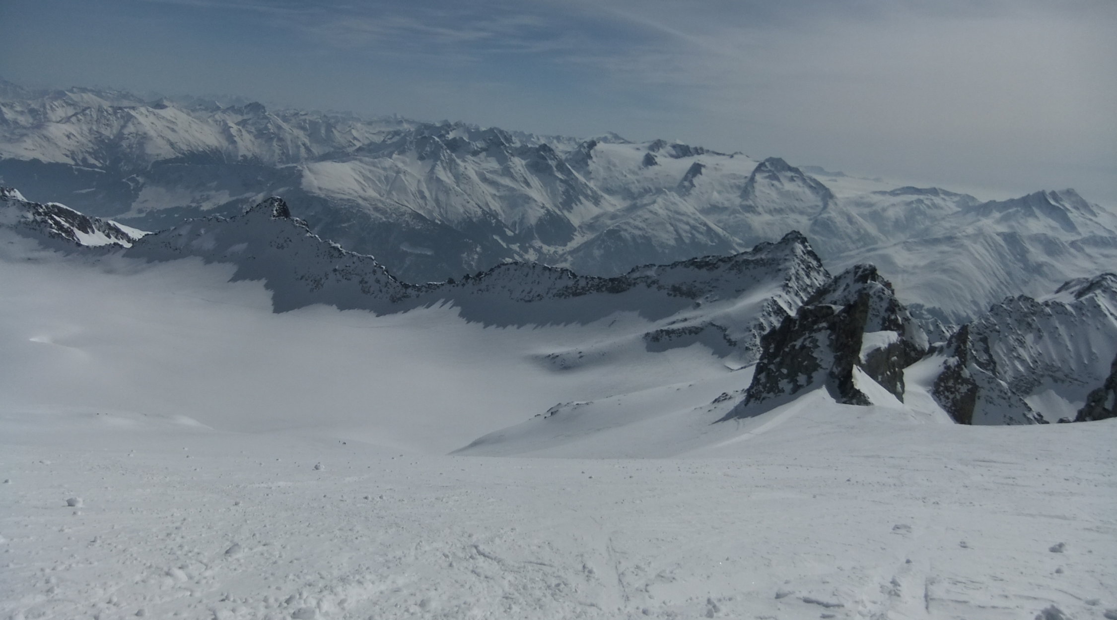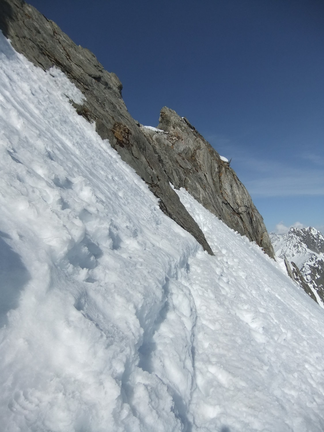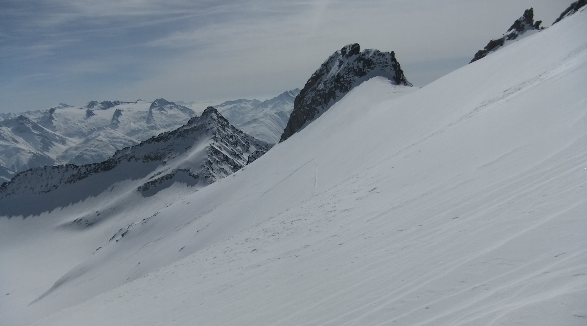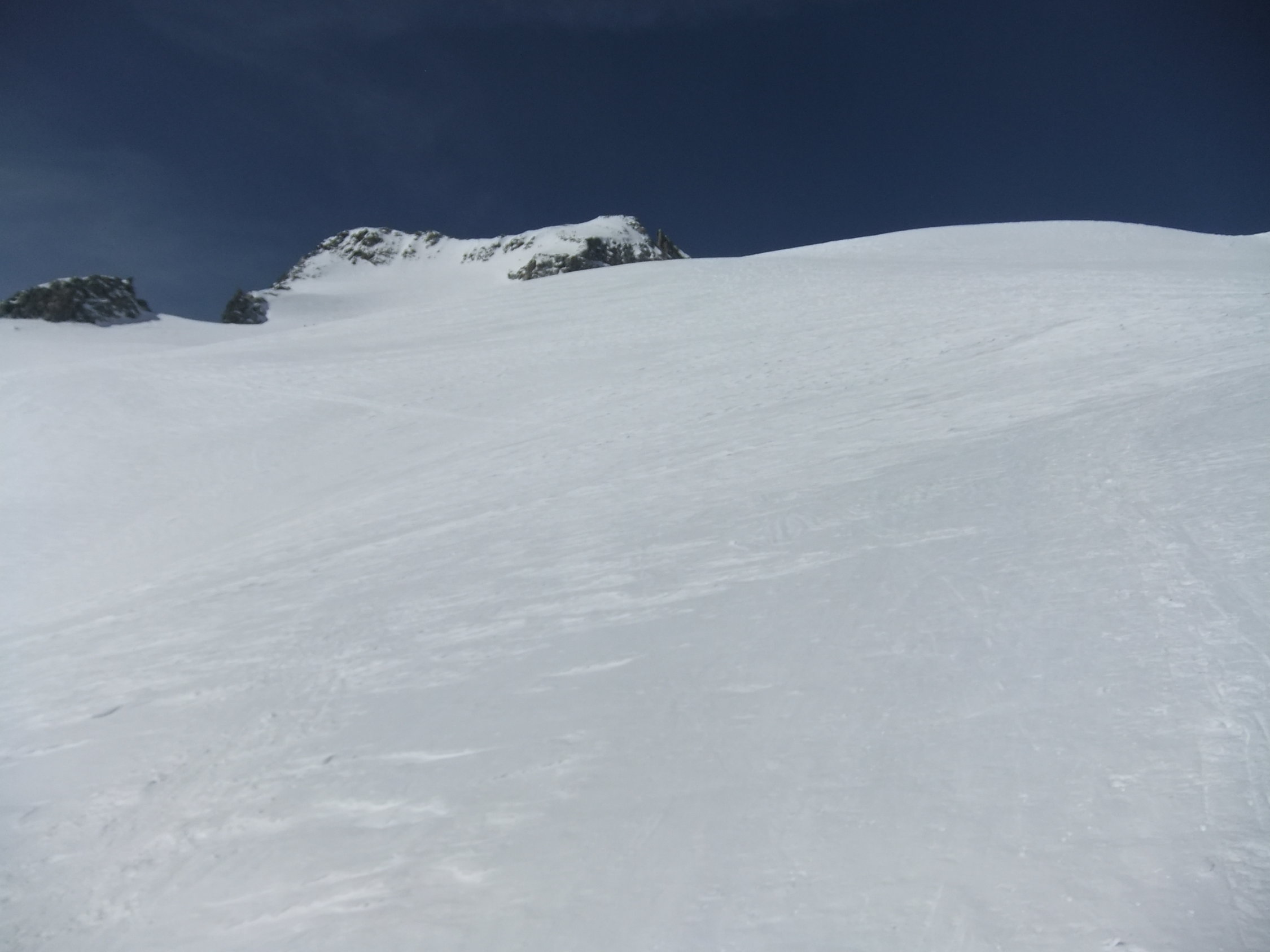 Während der langen Tour nur auf vollkommen überfirnte Schneeoberfläche getroffen, so daß sich der Kraftaufwand glücklicherweise in Grenzen hielt, mit Ausnahme der Passagen über Lee-Lagen.