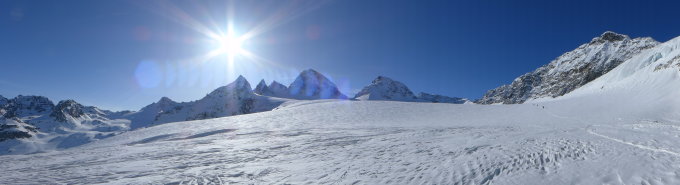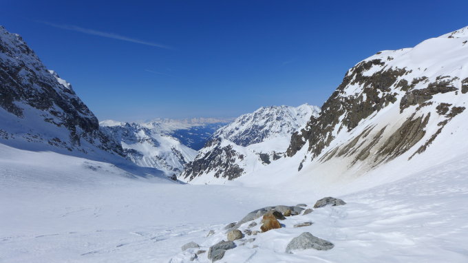 Abfahrt über das Verstanclator, mit etwas Windgepresster und Pulverschnee bis zum Medjibach.