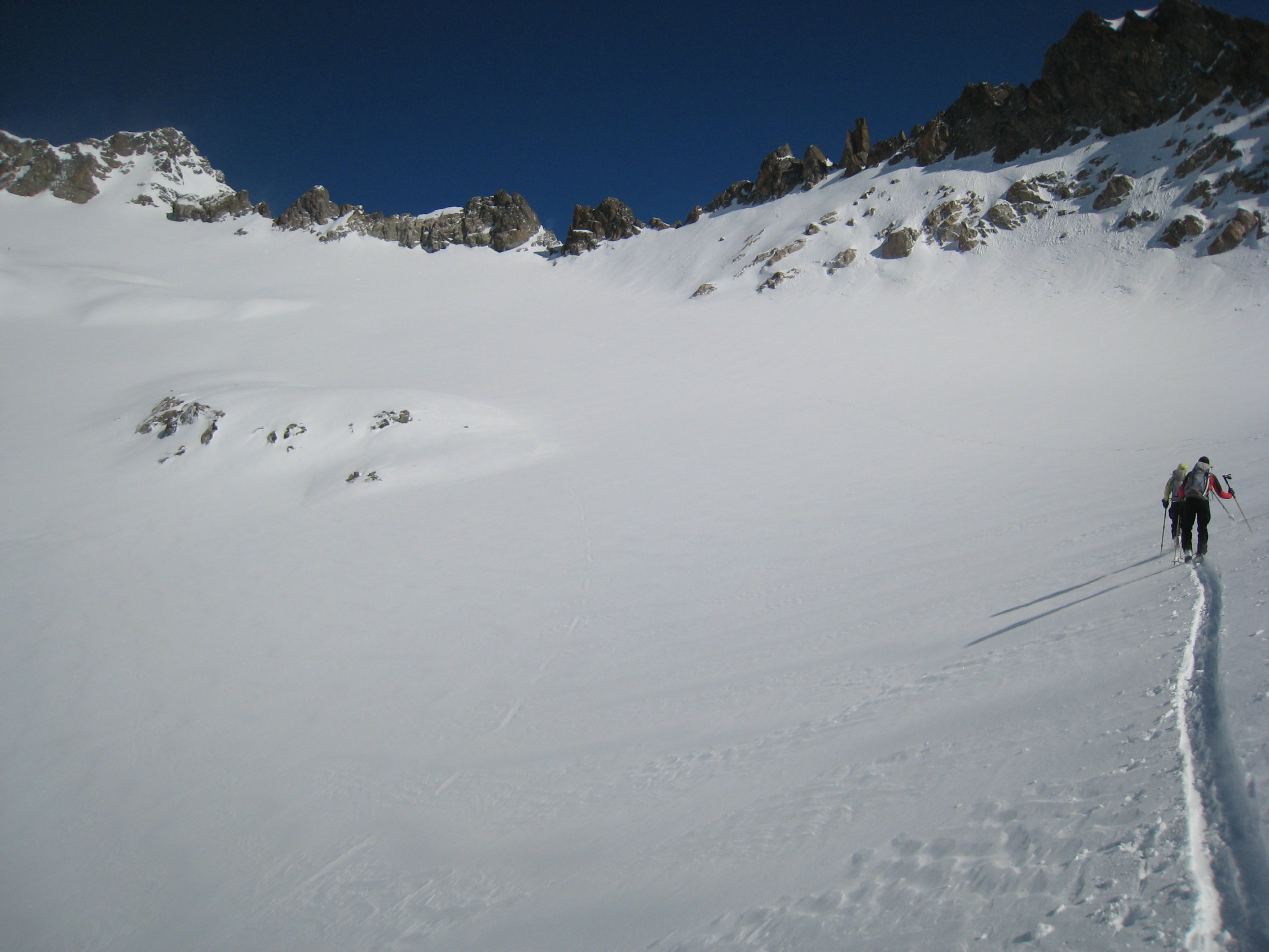 Es hat genug Schnee. Nach Wetterwechsel neu beurteilen. Es wurden heute etliche Touren in dem Gebiet gemacht.