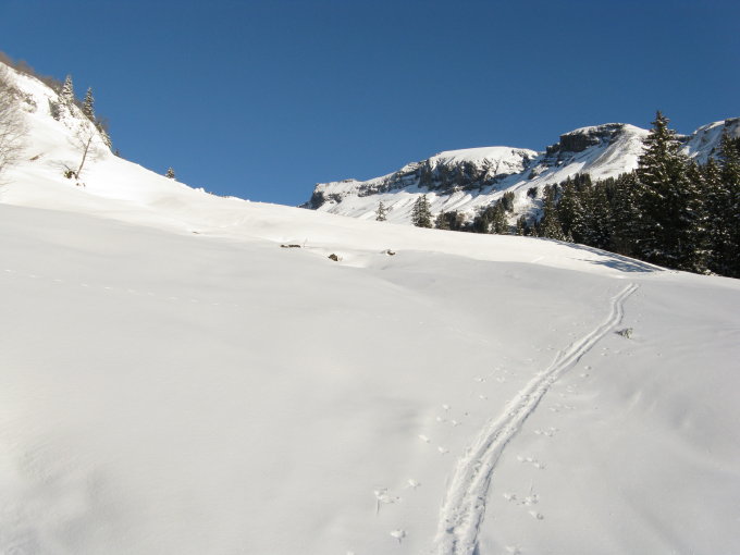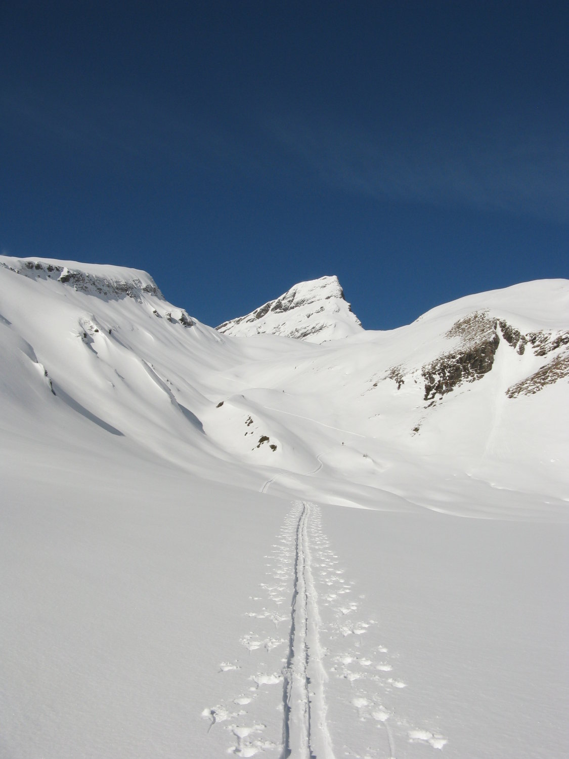 Im oberen Teil herrliche Abfahrt im Pulver.