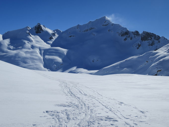 Heute beste Tourenverhältnisse im Gebiet, man darf aber den Triebschnee in steilen Hängen nicht unterschätzen. Nach dem Wetterumsturz ergibt sich eine komplett neue Situation.