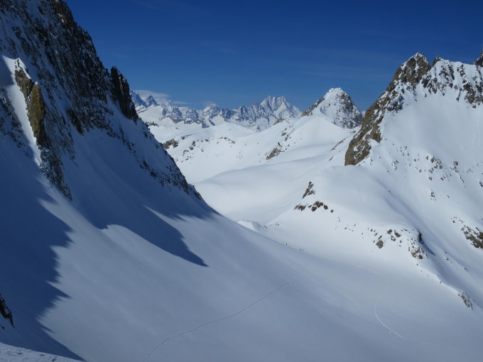 Ab dem Dampfbahnübergang in Realp konnten die Skis angeschnallt werden. Auf der breitgetretenen, gefrorenen Militärstrasse nach Hinter Schweig. Über den Sommerweg (X-Lawinenkegel) nach Ebnen. Die Route tschäferenseitig auf Ober Chäseren und durchs Witenwasseren zum Oberstafel war bestens gespurt. (Pulverschnee auf hartem Untergrund) Unter der Rotondohütte durch auf den Witenwasserengletscher, ab da machte sich der Wind bemerkbar, die Vortagsspuren waren zum grossen Teil zugeblasen. Auf dem Wasserscheidegrat tobten starke Nordwindböen und kreierten unzählige Triebschneenester. Zum Witenwasseren Ostgipfel hinauf präsentierte sich der Schnee abgeblasen, pickelhart oder dann wieder knietief. Zurück und am Grat entlang zum Hüenerstock traversiert, wollte von dort direkt zum Oberstafel abfahren, wegen des stürmischen Winds und dem Triebschnee, habe ich es jedoch nicht riskiert. War froh den Grat hinter mir zu lassen, meine Visage wurde dort regelrecht sandgestrahlt. In der Abfahrt über den Gletscher noch viel Pulver, im oberen Teil bremsender Triebschnee. Auch durchs Witenwasserental bis nach Ebnen beste Verhältnisse, Neuschnee auf harter Kruste.