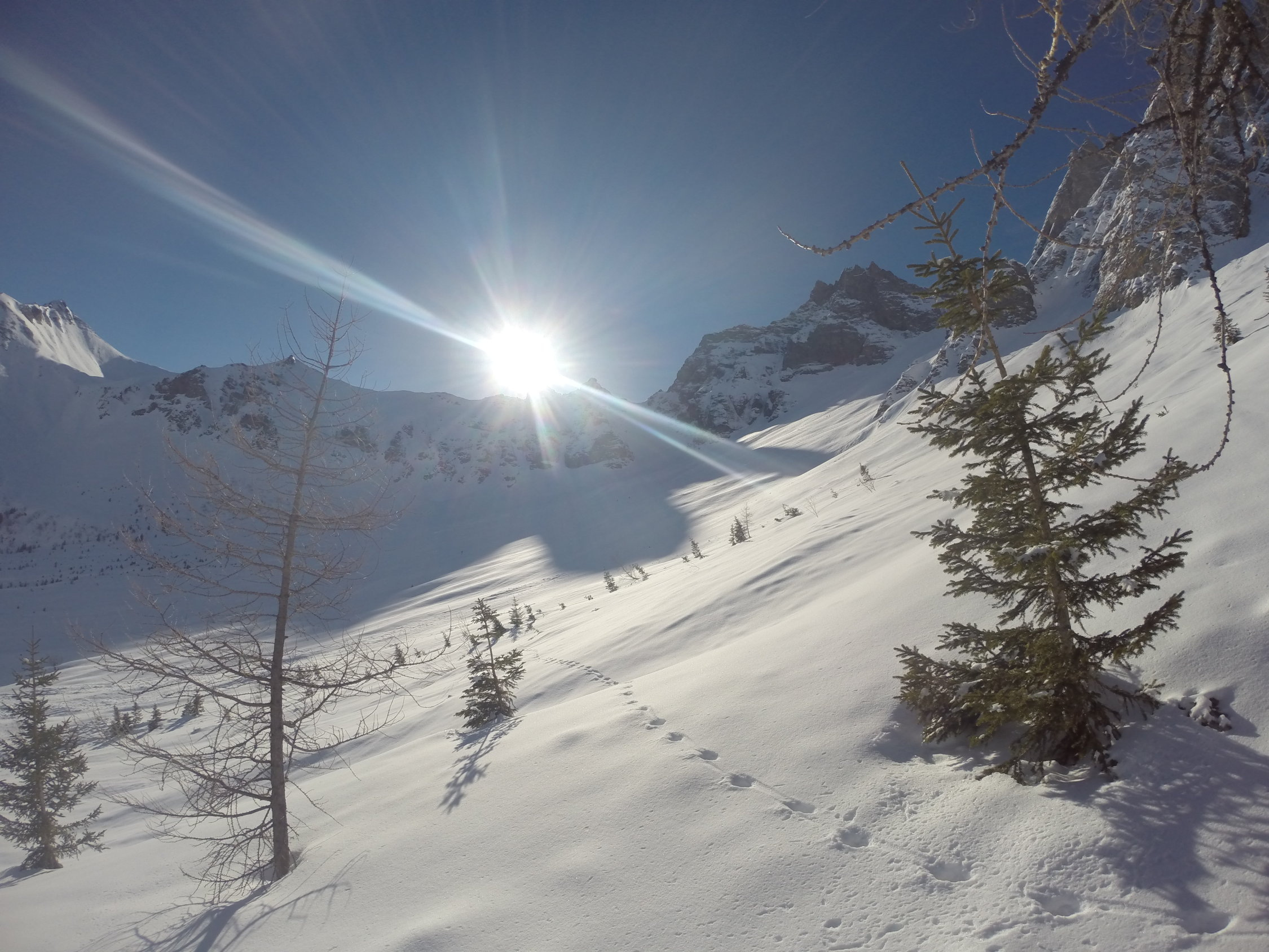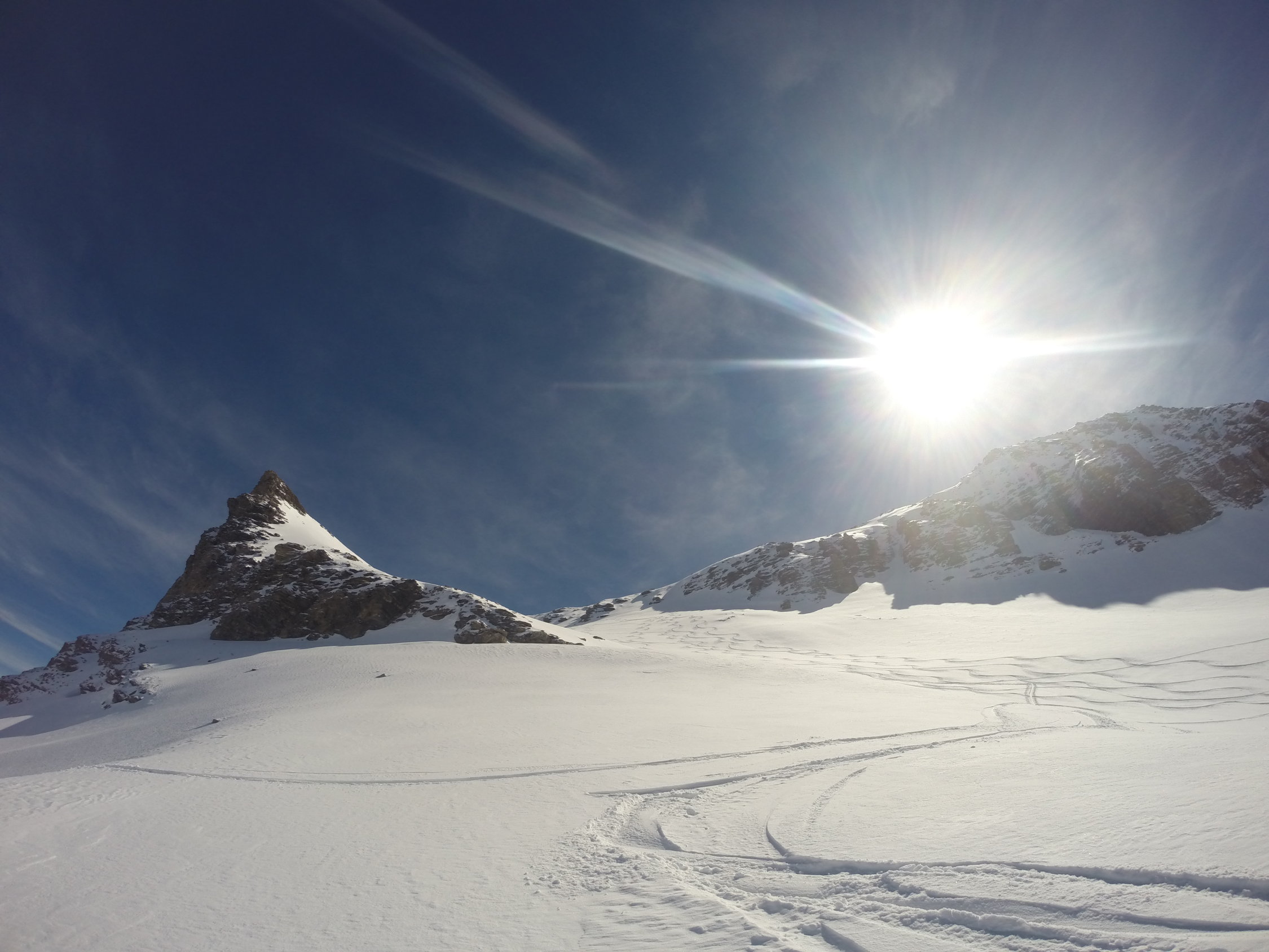 Gute Verhältnisse. Ab Skidepot aber viel Bodenloser Pulver. Da alleine unterwegs vor der letzten Steilstufe umgekehrt.