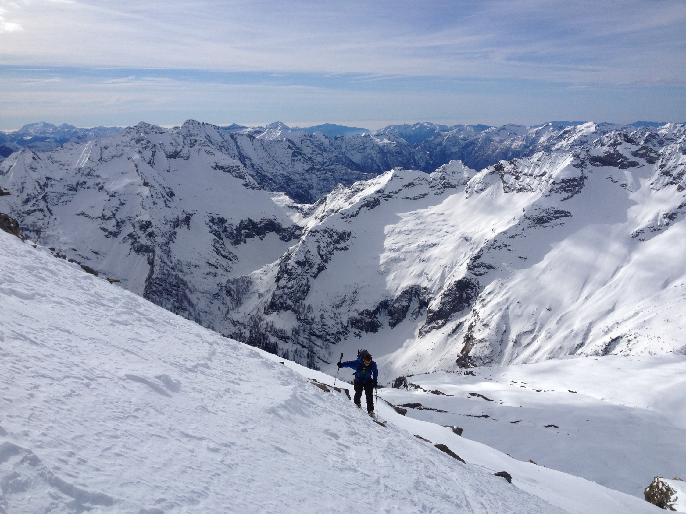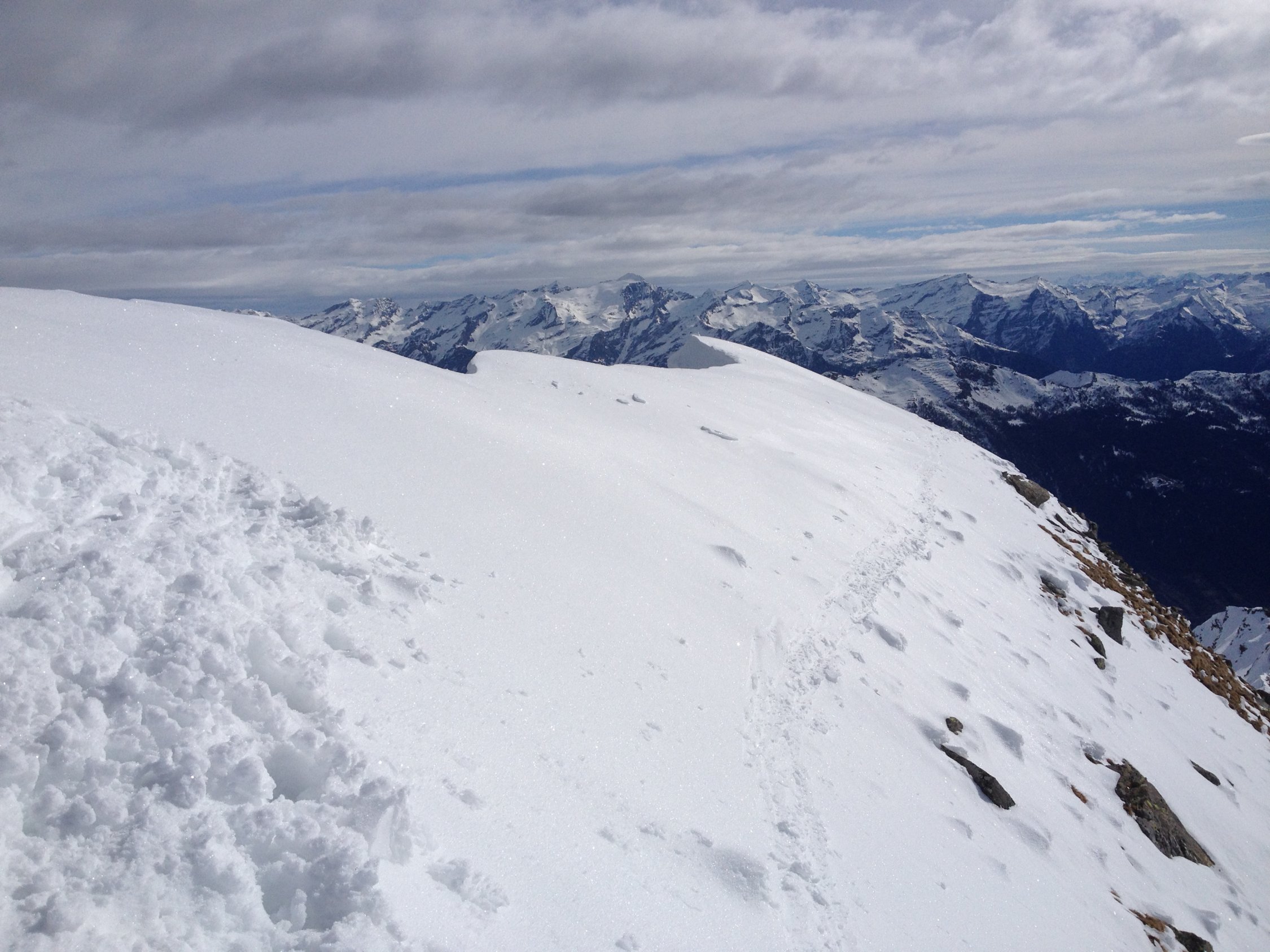 Start vom Rif. Sponda um 7:45 und Abfahrt vom Gipfel um 10:30 hat sich als gutes Timing herausgestellt, ganz oben noch etwas hart, dann bis zur Hütte perfekter Firn. Auch von der Campo Tencia Hütte wurde der Pizzo Forno begangen.