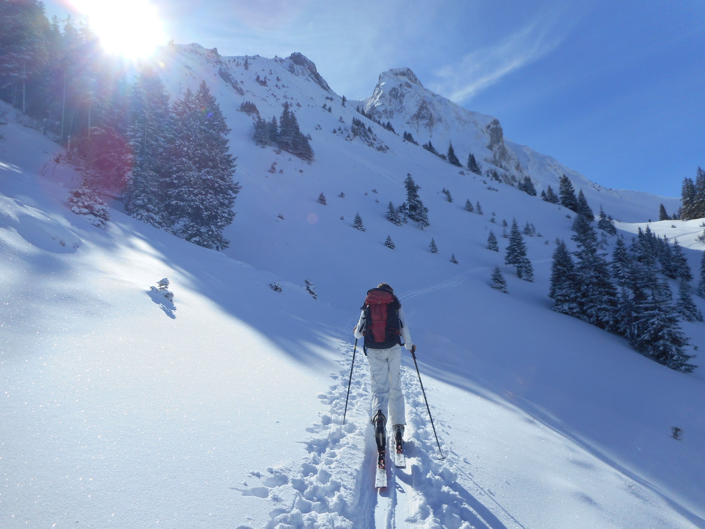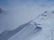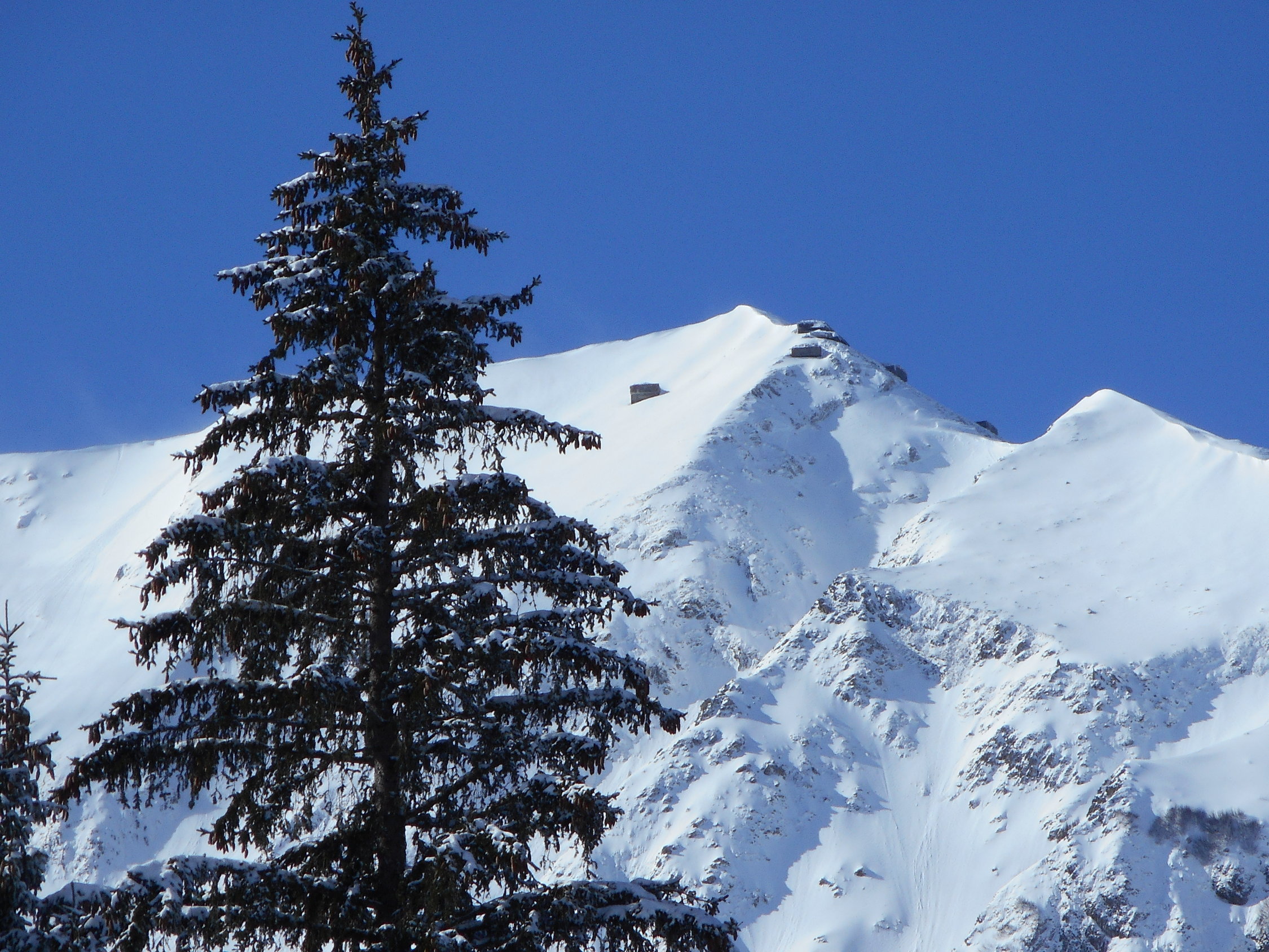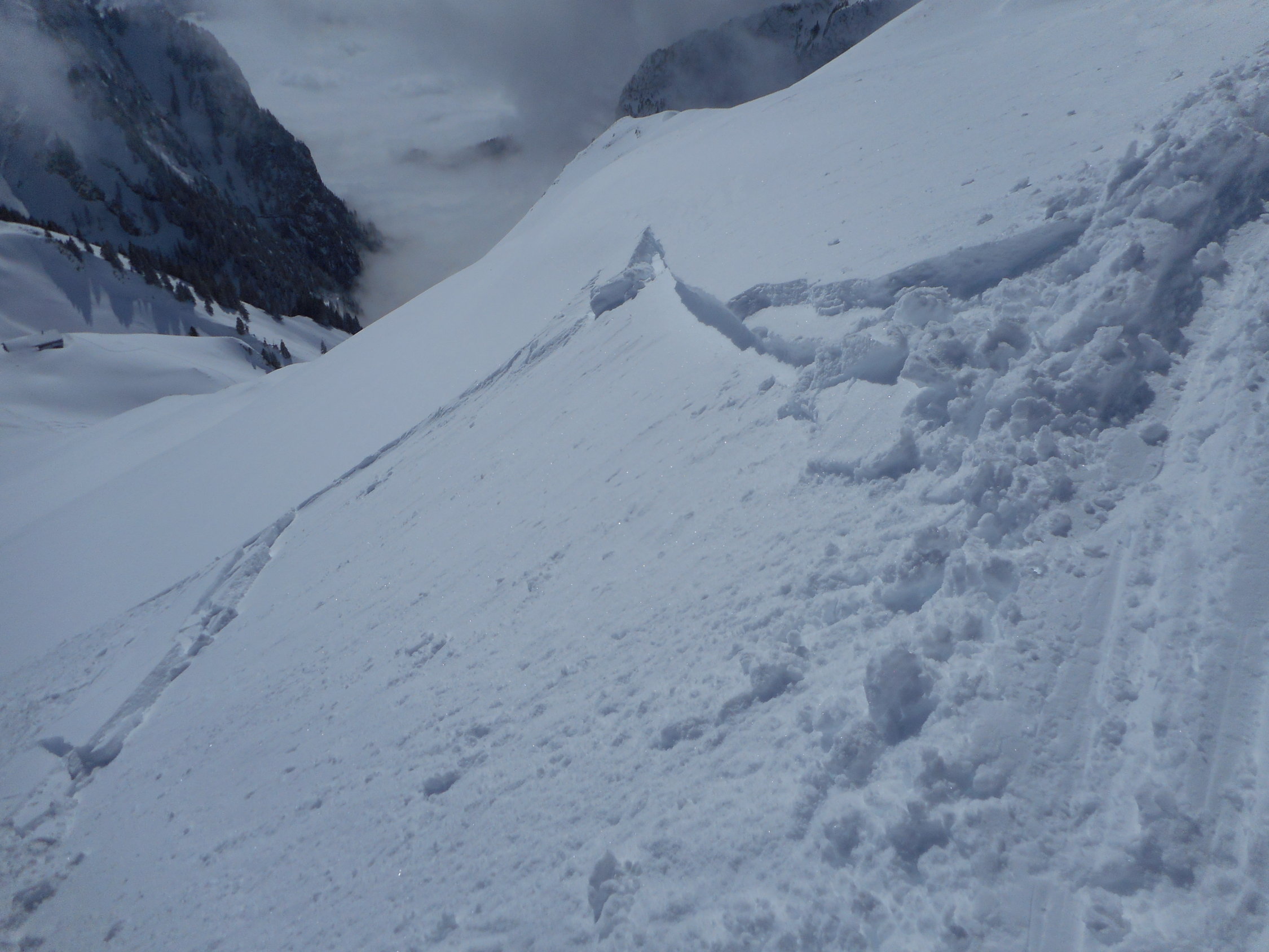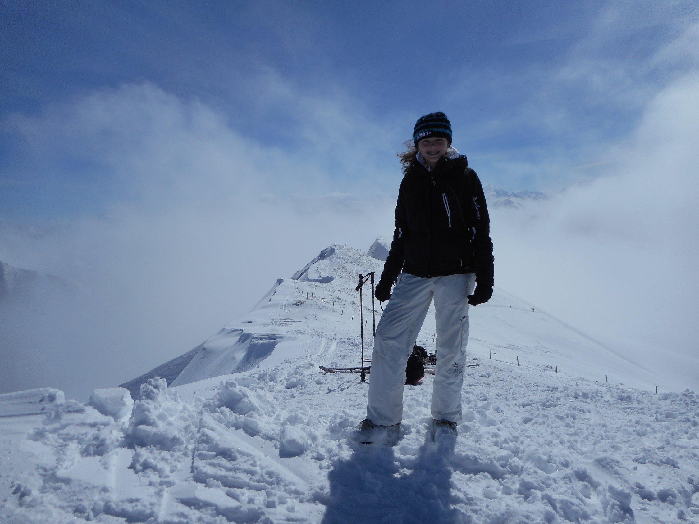 Aufstieg: Die Schneemessstation auf der Unteren Gantrischhütte zeigte heute morgen 18cm Neuschnee an. Es war wunderbarer Pulverschnee auf einer sehr hartgefrorenen Altschneeschicht. Ueber Nacht ist dieser Schnee praktisch ohne Windeinfluss gefallen.