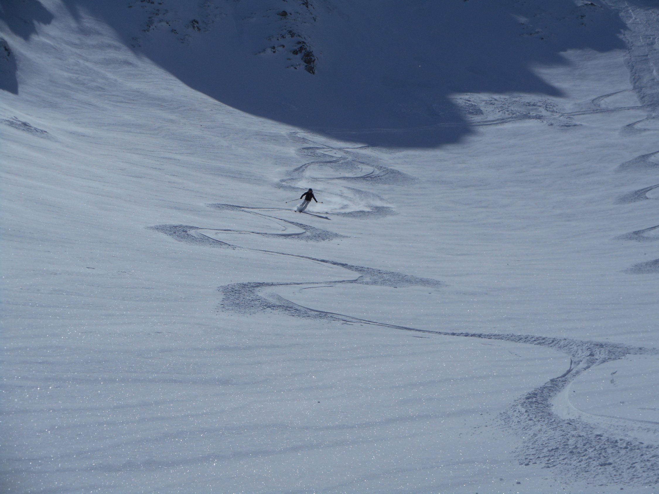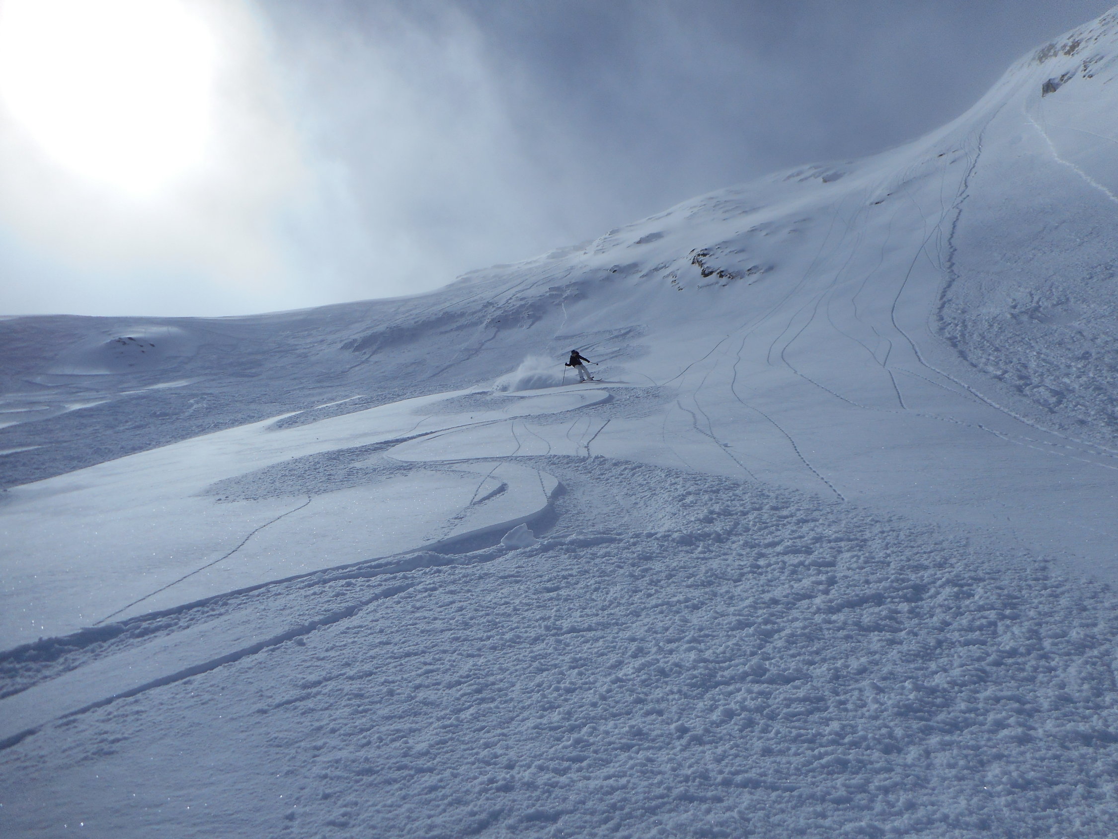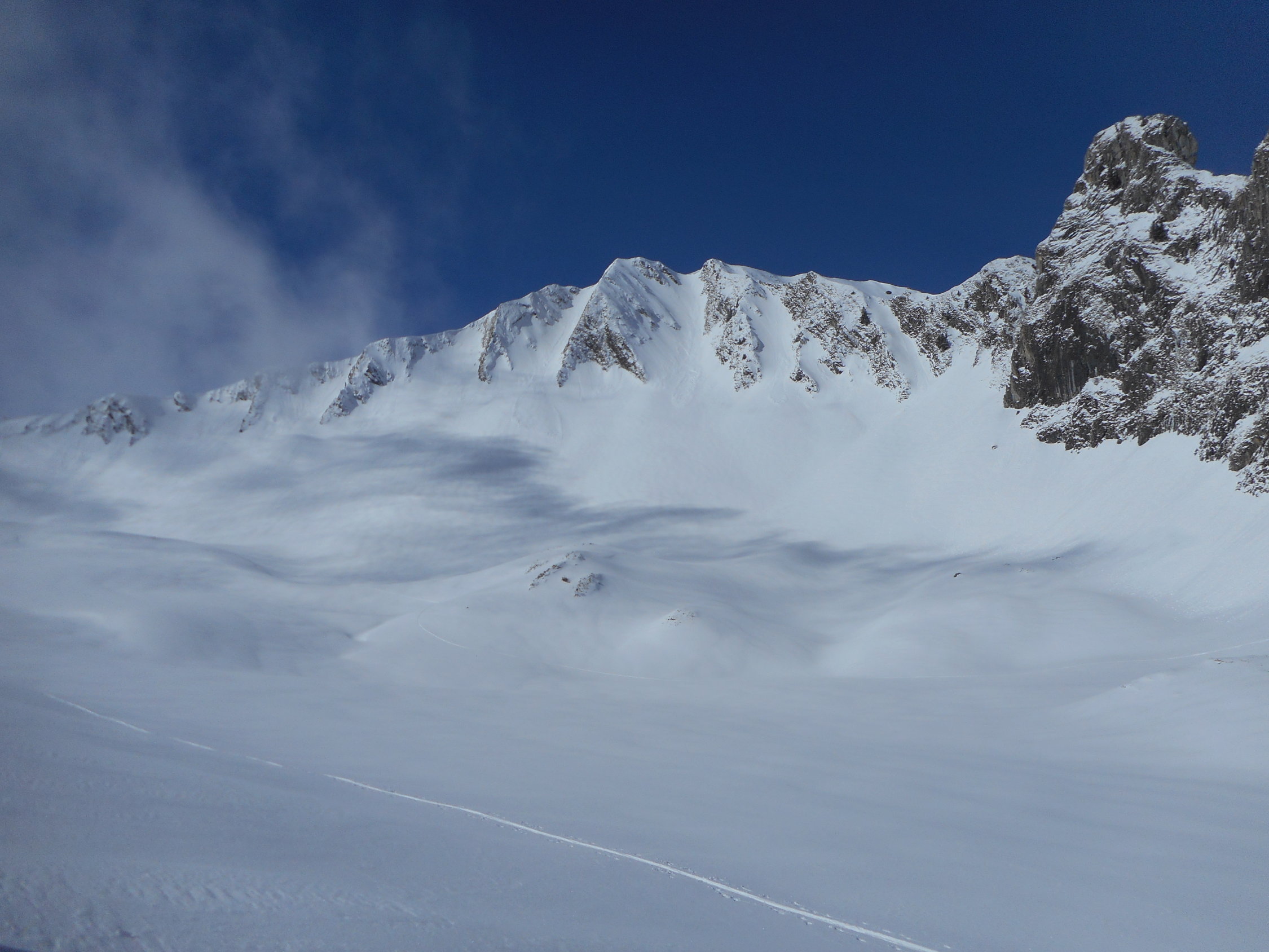Abfahrt: Durch die Nordflanke des Bürglen. Hier perfekte Verhältnisse, d. h. 18cm - 25cm Pulverschnee auf harter Unterlage. Nochmals herrschten in den Berner Voralpen hochwinterliche Verhältnisse. ( siehe Fotos )
