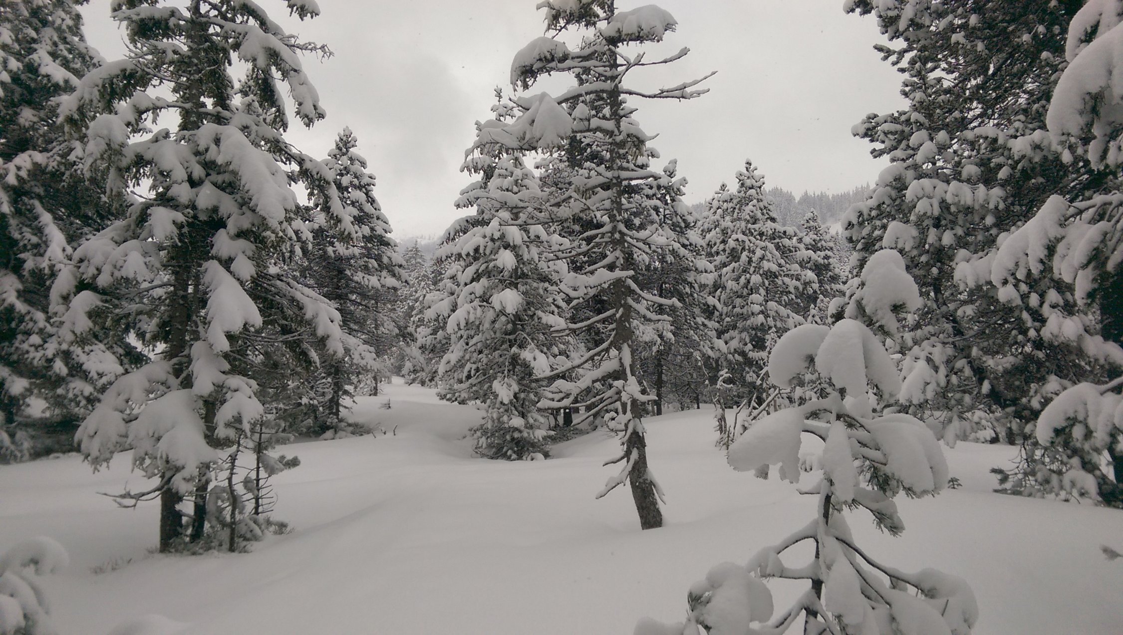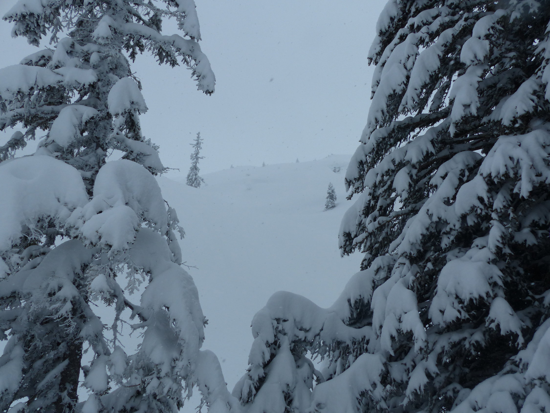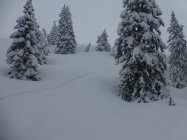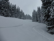 Abfahrt: oben super !! Praktisch pulver..îm Wald immer noch top..aber etwas "klebriger"...unten dito..teilweise richtig nasser Schnee und in den flachen Partien bremsend...