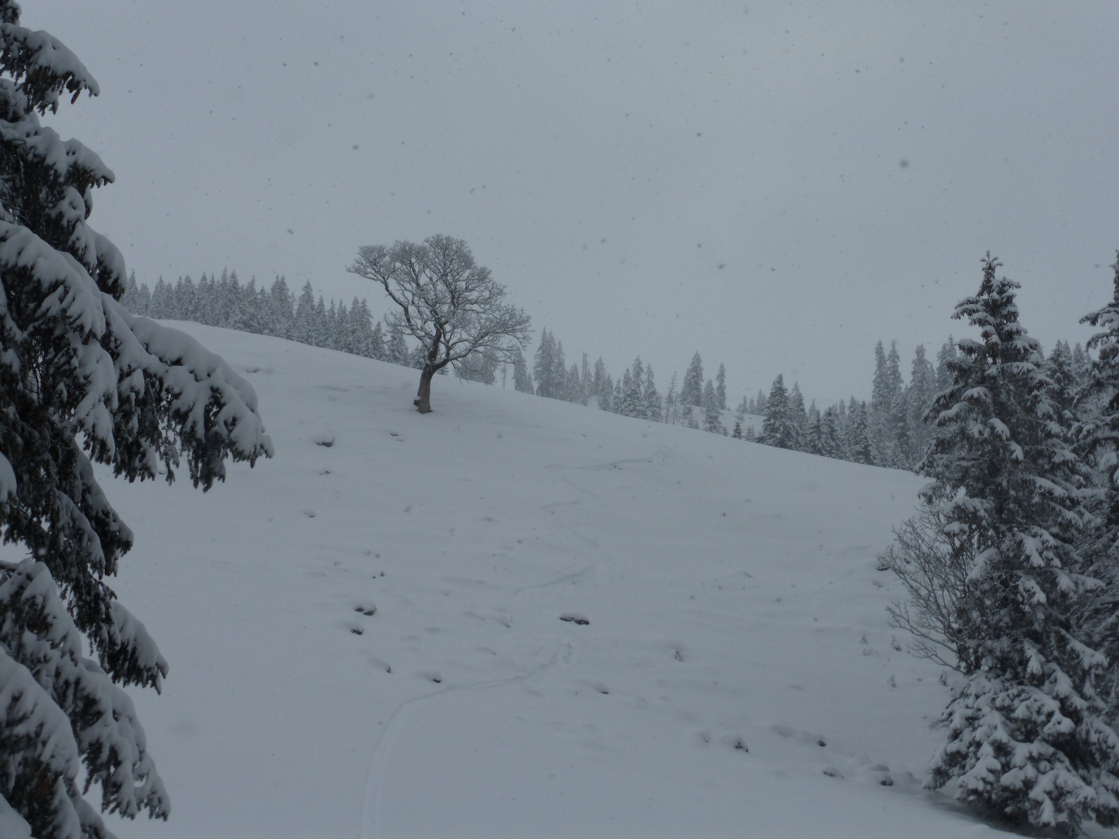 Hirsegg gestartet, geht gerade noch knapp, für " die Masse" nicht mehr zu empfehlen. In den Mulden hat es Schnee hineingeweht. Zuunterst keine Unterlage, ab Stächelegg dann doch Neuschnee auf gefrorener Unterlage. Es hat 20-30 oberhalb Waldgrenze bis 50cm Neuschnee...