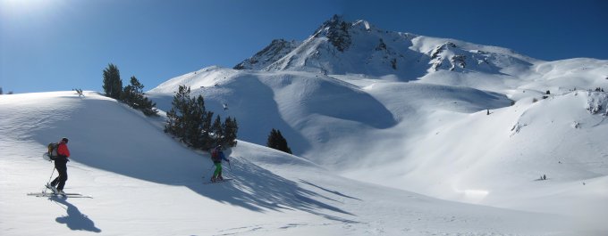 Viel Triebschnee vorhanden, bedingt vorsichtige Routenwahl.