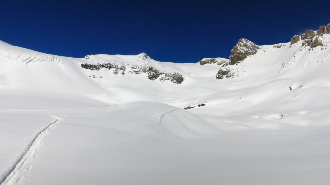 Die Abfahrt vom Wildstrubel war im oberen Bereich top, ab der Mulde schwierige Verhältnisse.