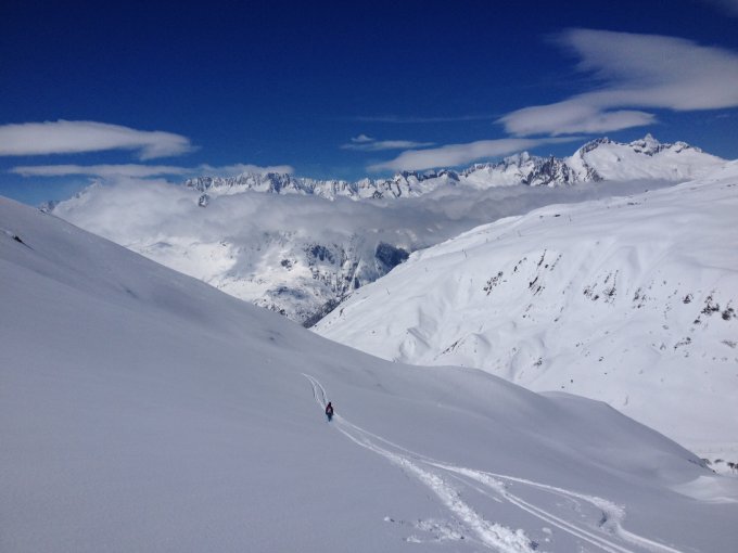 Nach dem Pazolastock sind wir weiter Richtung Rossbodenstock und in der Lücke nach Andermatt abgepowdert. Top Verhältnisse bis zur Hälfte. Ab dort an wenigen stellen Winfverfrachtungen, Firn und Pow im Wechsel. Dank der guten Sichtverhältnisse kein Problem.