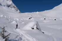 Oben min 30-40cm Neuschnee, der trotz Sonneneinstrahlung noch gut zu fahren war.