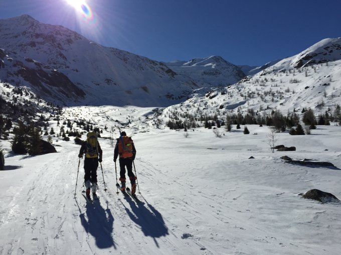 Auf dem unteren Gletscherfeld und am Aufschwung zum oberen Geltscherfeld gut fahrbare Unterlage. Auf dem oberen Teil des Gletschers ist die Schneeoberfläche wie ein Waschbrett, unangenehm zu fahren, vom Wind zerblasen. Der Grat zum Gipfel hat eine Windharschkruste, Harscheisen sind sehr hilfreich.