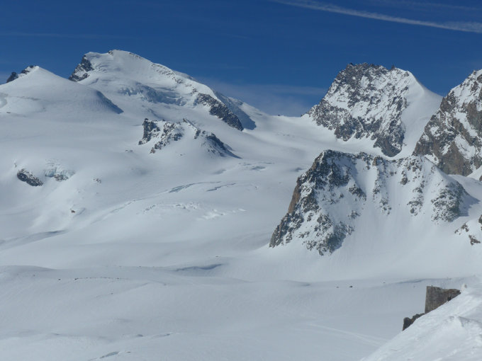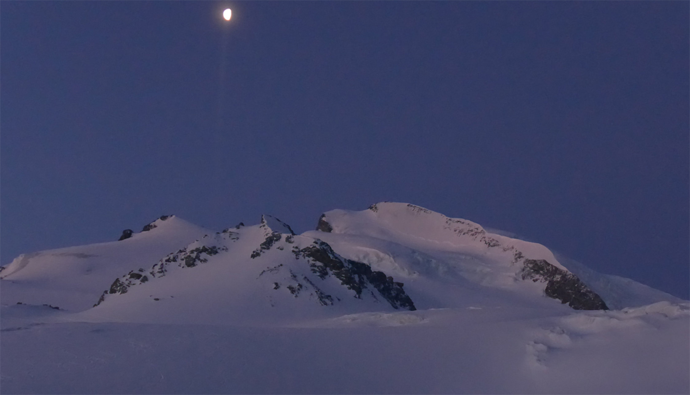 Wie Gipfelrückkehrer berichteten, sind auch am Rimpfischhorn und am Allalinhorn (ohne Steigesen machbar) die Verhältnisse gut.