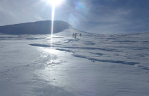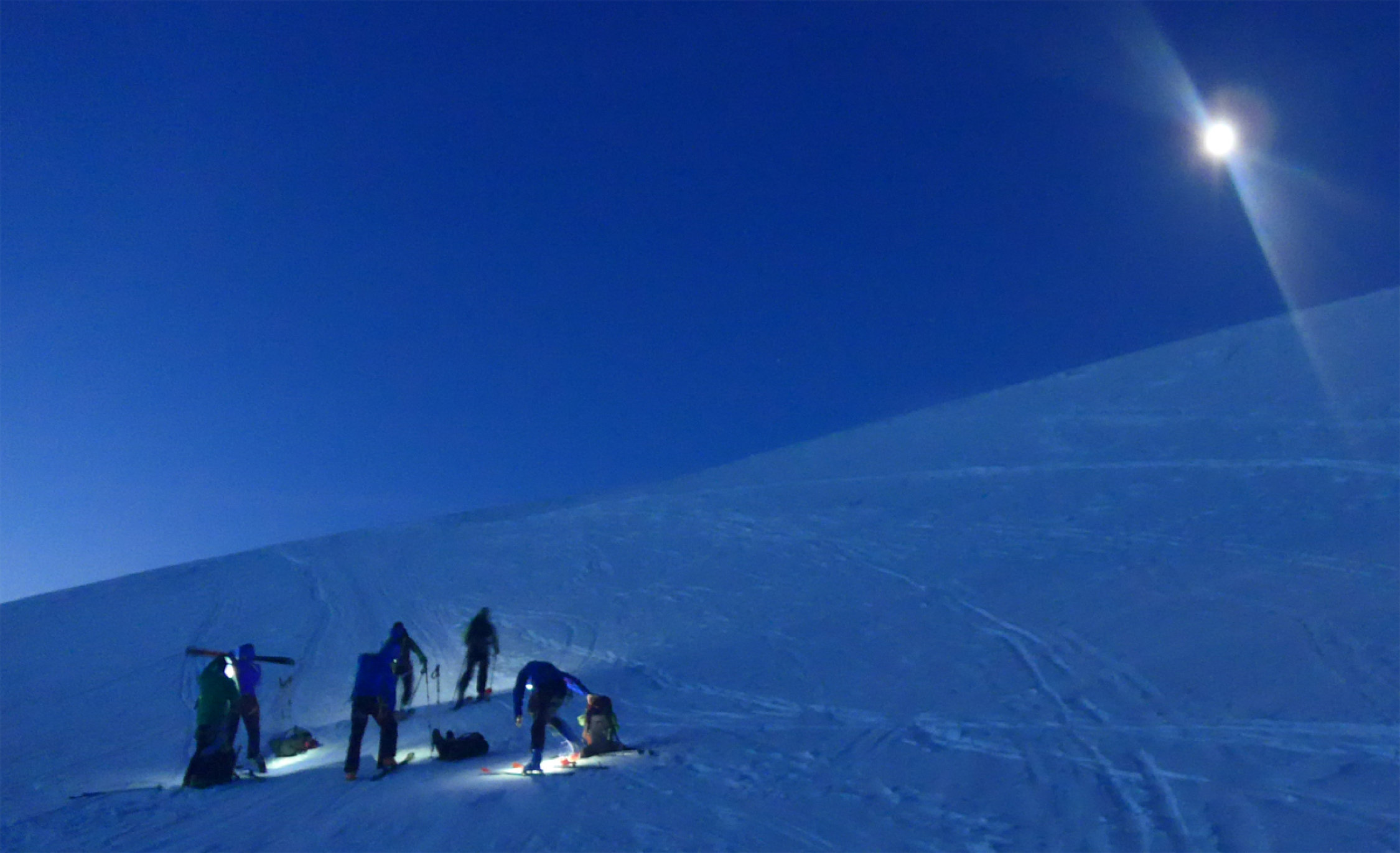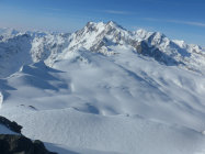 Gute Verhältnisse; die Spalten sehen zumindest gut gedeckt aus. Gut ohne Steigeisen möglich; in der steilen Mulde oberhalb des Adlerpasses Harsteisen angenehm. Abfahrt so la la, hauptsächlich hart.