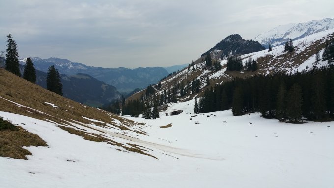Heute wieder eine Frühjahrstour. Da ich nur Frontantrieb habe, war der Weg nur mit Ketten zu bezwingen. Am Startplatz waren es knapp 10 Grad. Der Schnee war schon angetaut. Die Aufsteigspur war nicht optimal gelegt. Viele Kehren und über Bäume und durch Büsche. Habe ich schon besser gesehen.