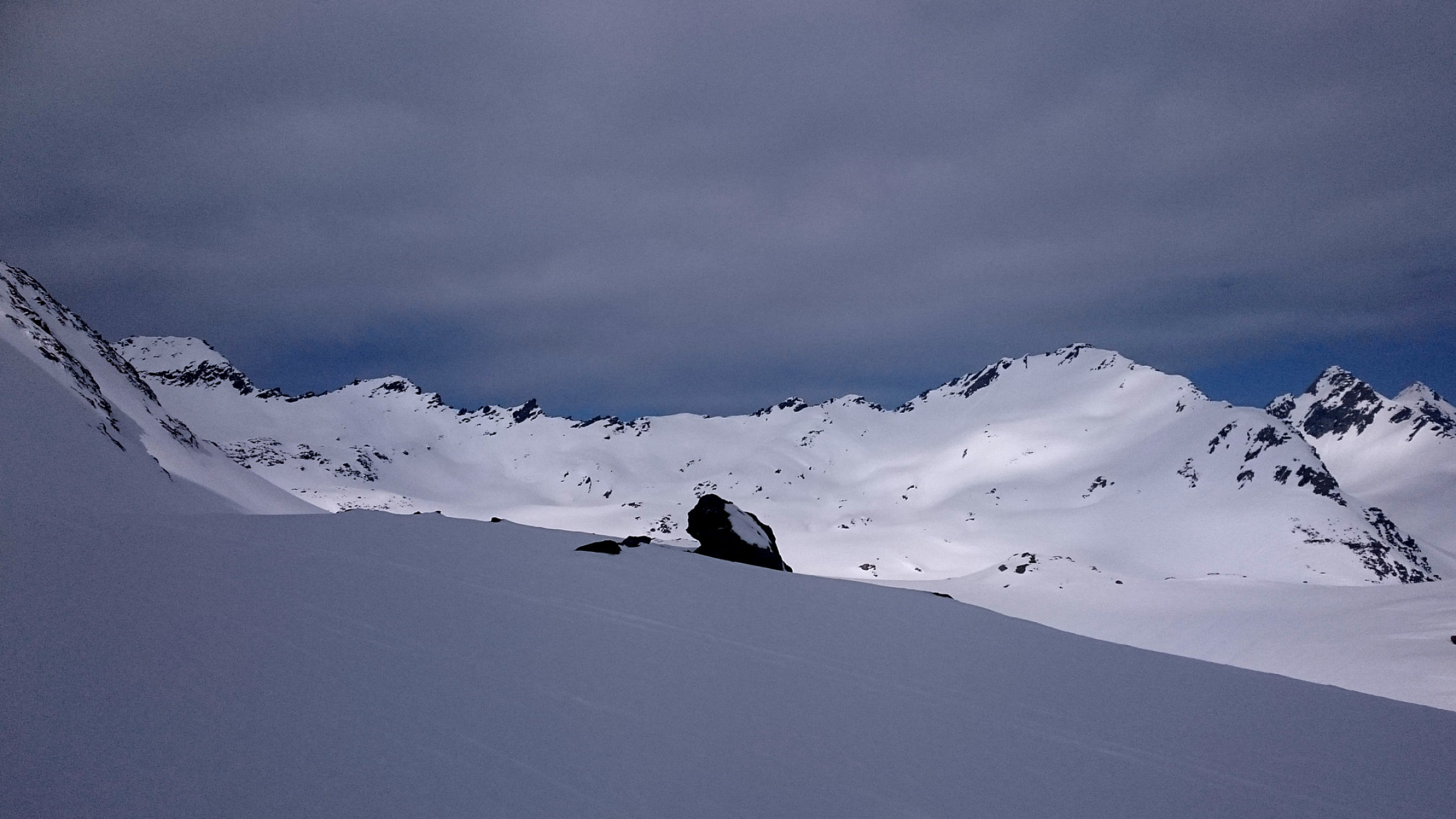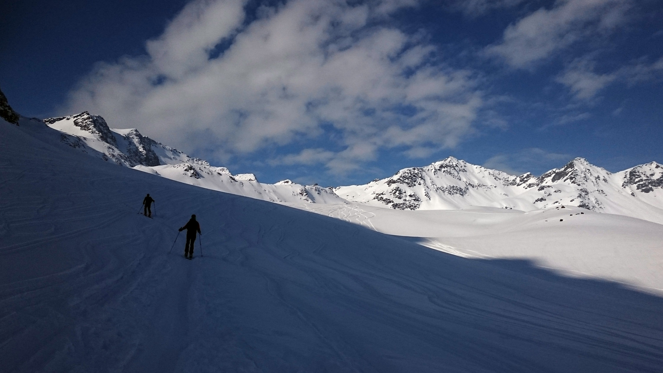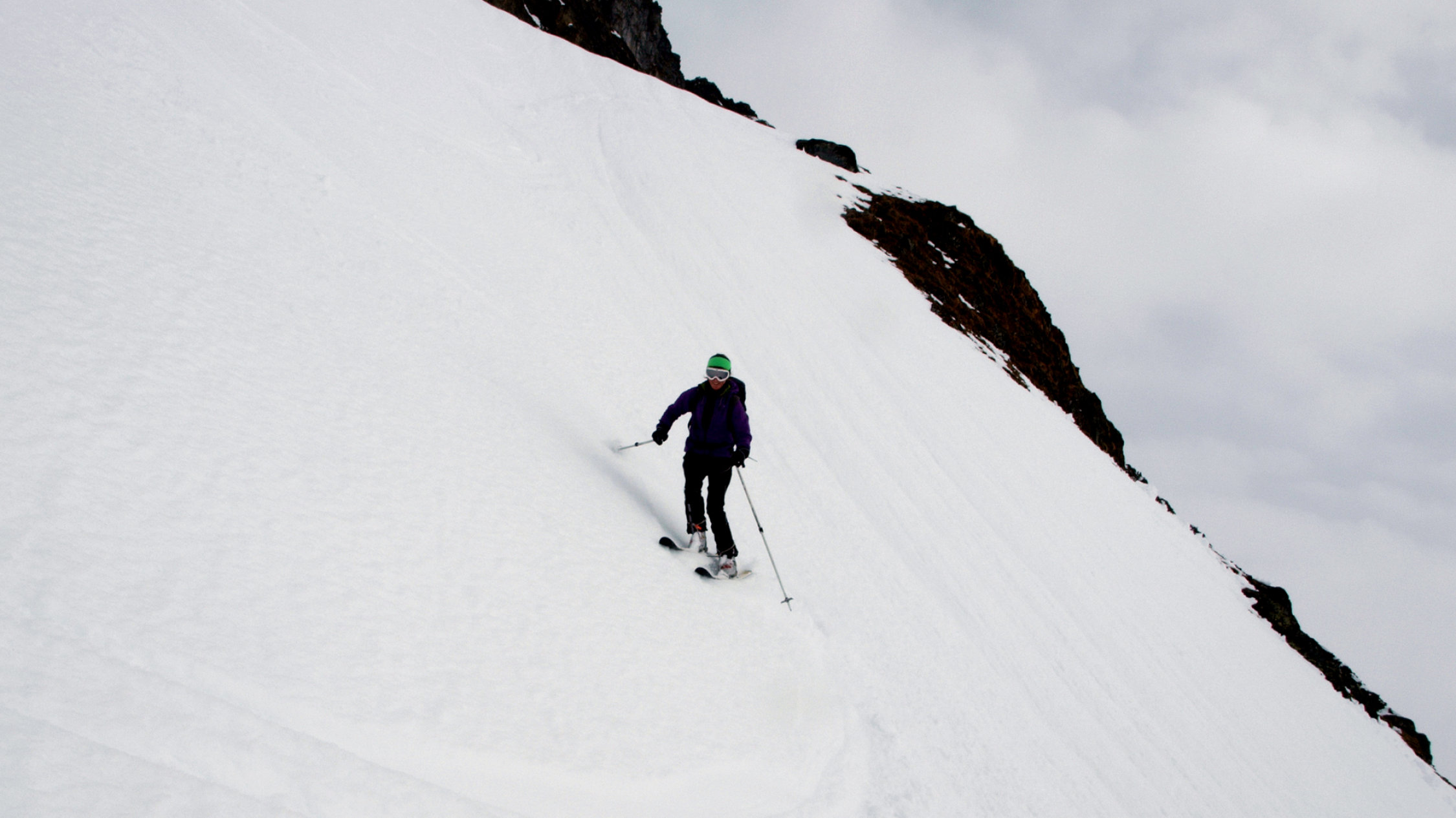 Trotz zunehmend diffuser LIchtverhältnisse geniale Abfahrt ins Gleirschtal.