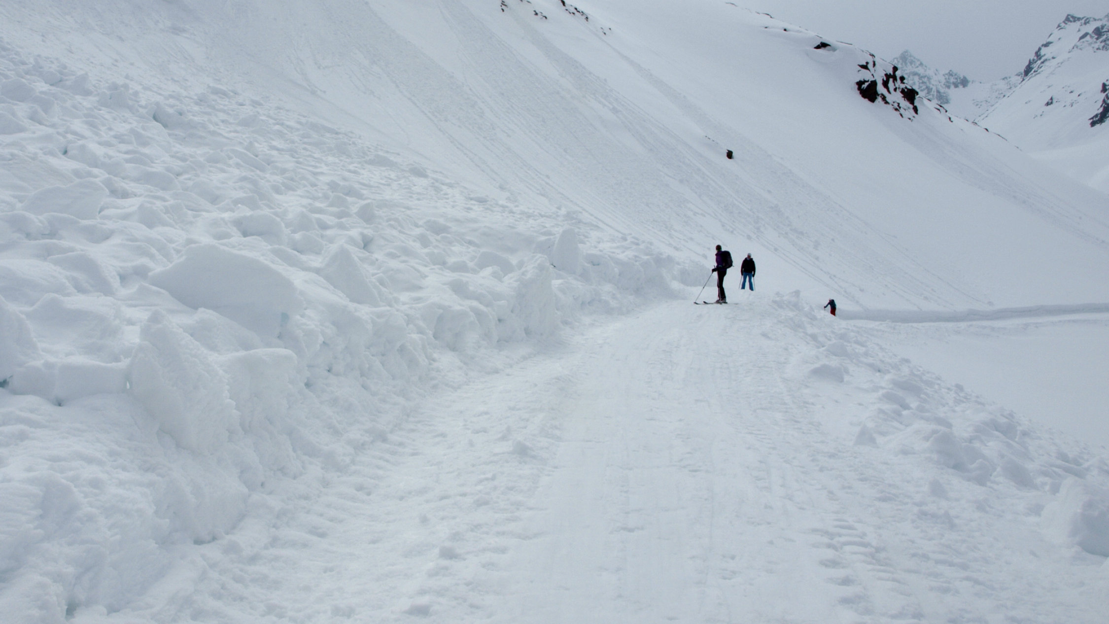 Immer wieder Grundlawinen aus den Steilflanken, vieles ist schon abgeräumt aber nicht alles.