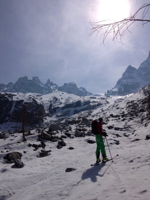 Bei der Abfahrt war der Schnee oben oft windgepresst, dafür unterhalb von etwa 2500 m ü.M. gut tragend. Bei geeigneter Routenwahl Abfahrt praktisch bis zum PP auf 1200 m ü.M. machbar (von unten gesehen rechts bleiben und den Bach erst ganz unten bei den Hütten von Lera queren)