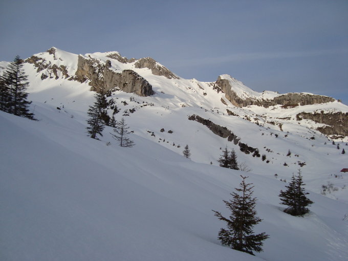 Das Lidernengebiet ist noch reichlich mit Schnee versorgt. Mit der Wärme sollte er sich noch setzen, dann gibt es schönen Sulz obendrauf.