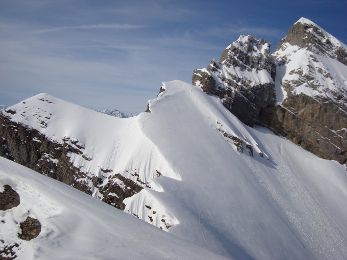 Harscheisen zwingend. Die steile Traverse am Chaiserstock sollte man nicht zu spät begehen.