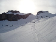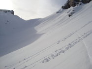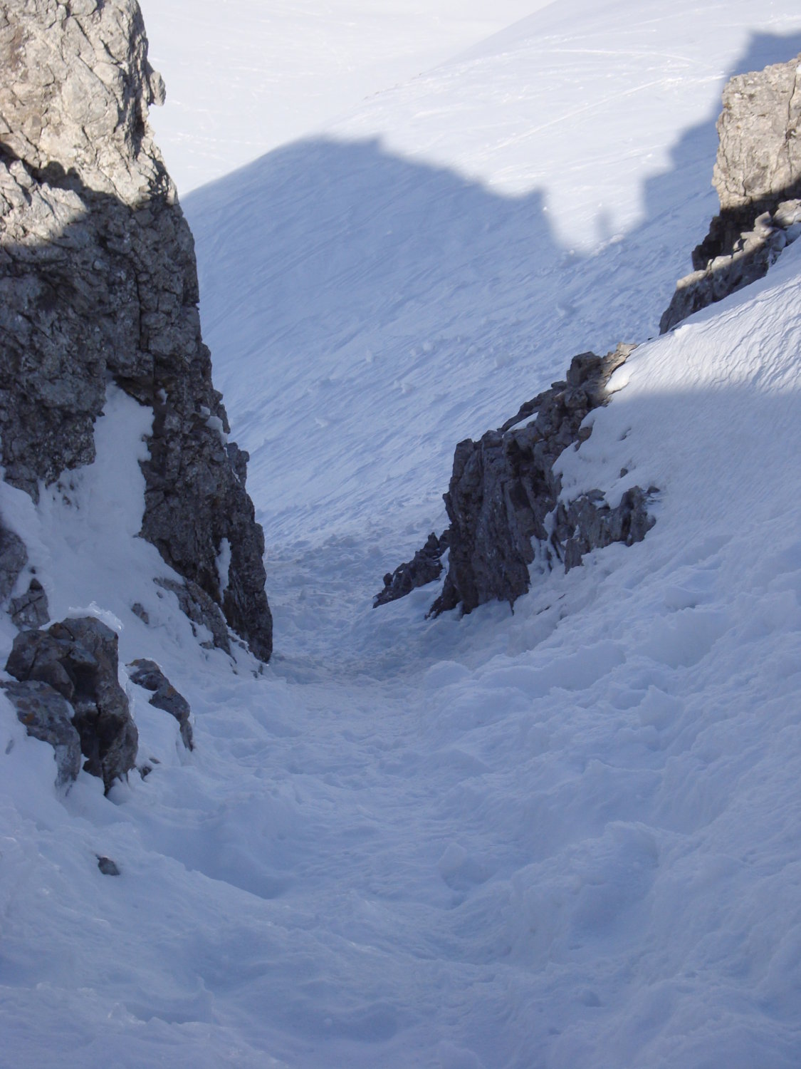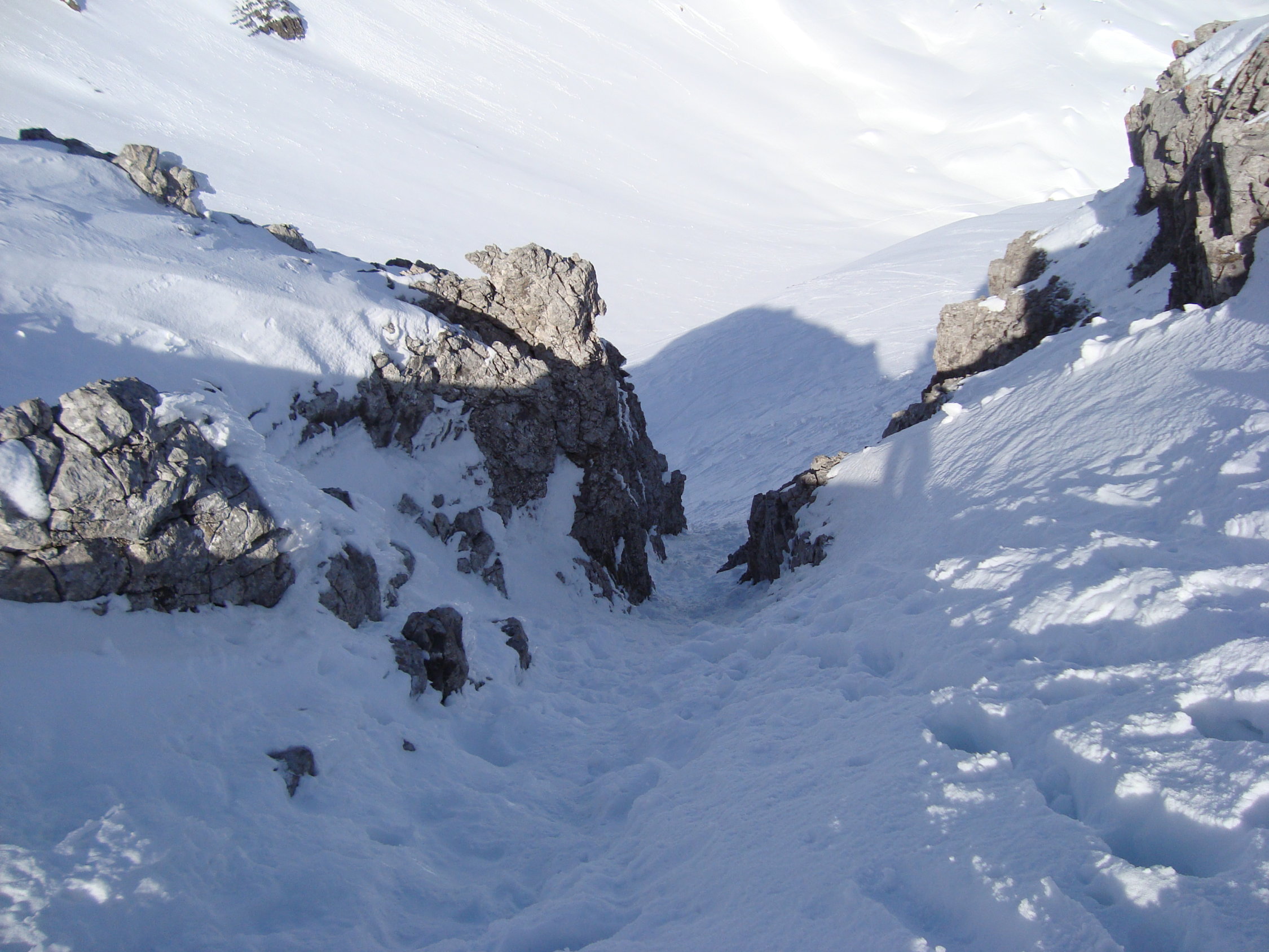 Das Couloir war gut zu begehen, guter fester Untergrund mit alten Aufstiegsspuren versehen.
