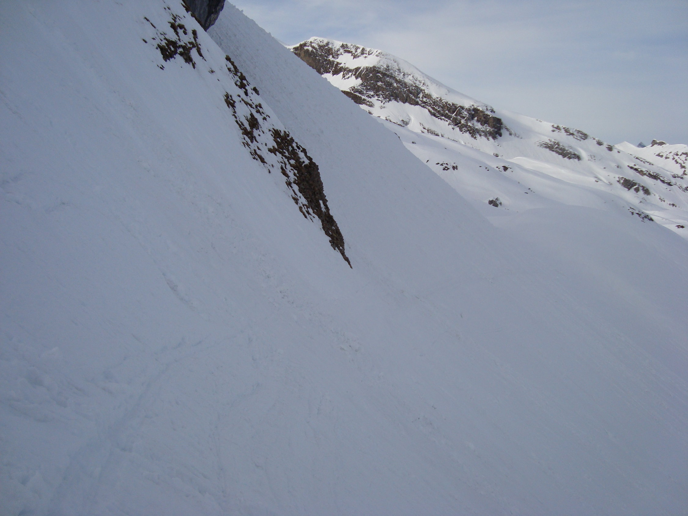 Einige alte Nasschneerutsche aus den steilen Flanken am Chaiserstock.