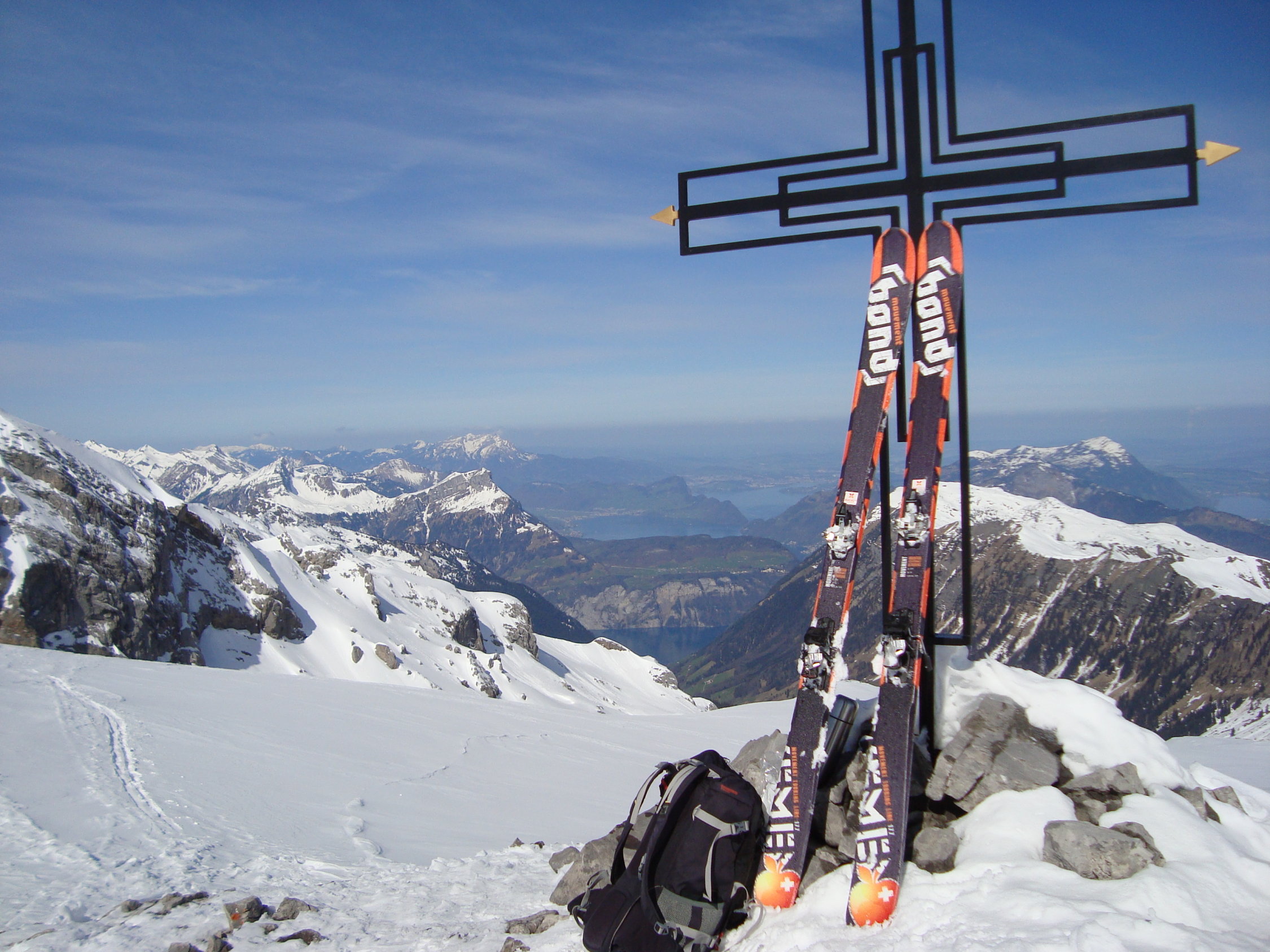 Harscheisen zwingend. Die steile Traverse am Chaiserstock sollte man nicht zu spät begehen.