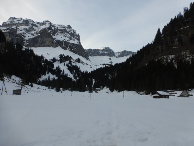 Am morgen noch leicht bedeckt aber schon warm. Der Südwestwind leicht spürbar, aber nicht störend. Spur direkt von Sali noch intakt, geht sehr gut. Weiter ohne Probleme der teilweise etwas steil angelegten Spur über Oberstafel - Munggenband - Wächtersbutzen und am Chli Glatten vorbei. Diese Passage Richtung Erst Chällen ist einfach wunderschön.