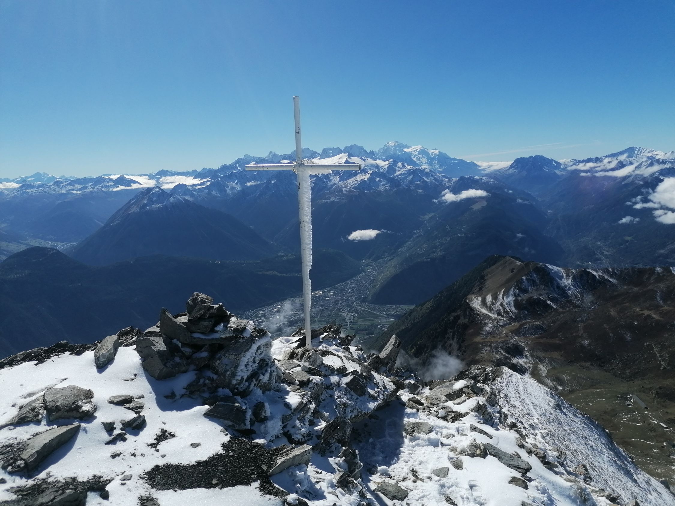 Nach 52 Jahren unterwegs sein den Alpen, sage ich: Es war mein schönster 2000er mit einer ständigen unglaublichen Aussicht. Es grüsst: Das Mont Blanc Massiv, die Walliser-, Berner- und Waadtländeralpen, Gran Paradiso, sowie viele Berge in Frankreich und Italien. Der Tiefblick ins Rhonetal ist grandios. Es war ein Traum in diesem goldigen Herbst unterwegs sein zu dürfen, und es wird in den nächsten Tagen noch goldiger. Merci beaucoup an Mutter Natur!
