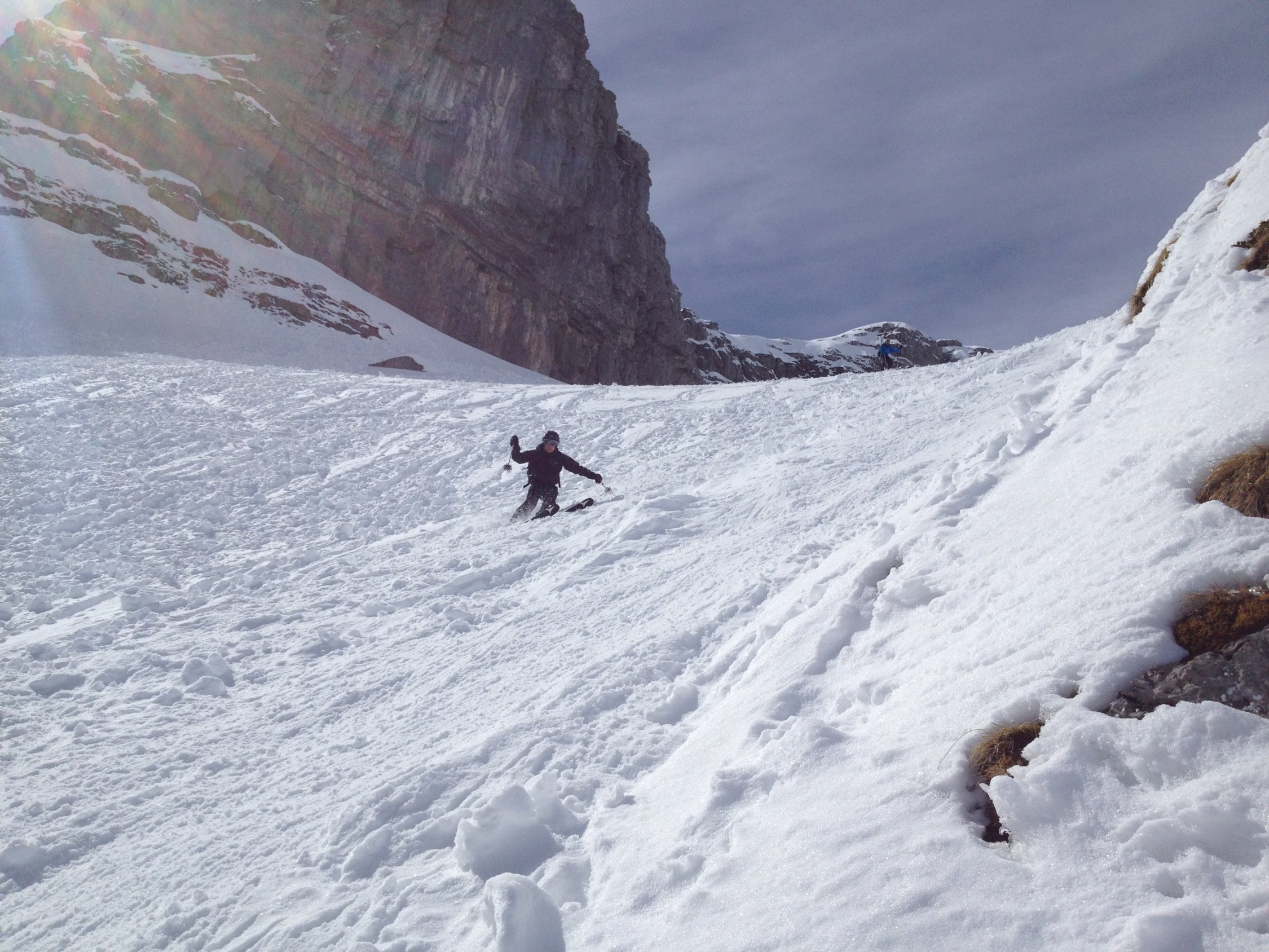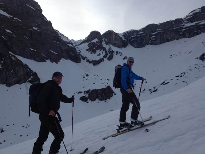 Im Aufstieg fanden wir gute Verhältnisse vor. In der ersten Abfahrt zum Firner Loch fand wir teilweise Pulverschnee auf einer harten Unterlage vor. Die Verhältnisse in der Inner Brüelchälen fand man alle Schneearten an.