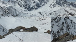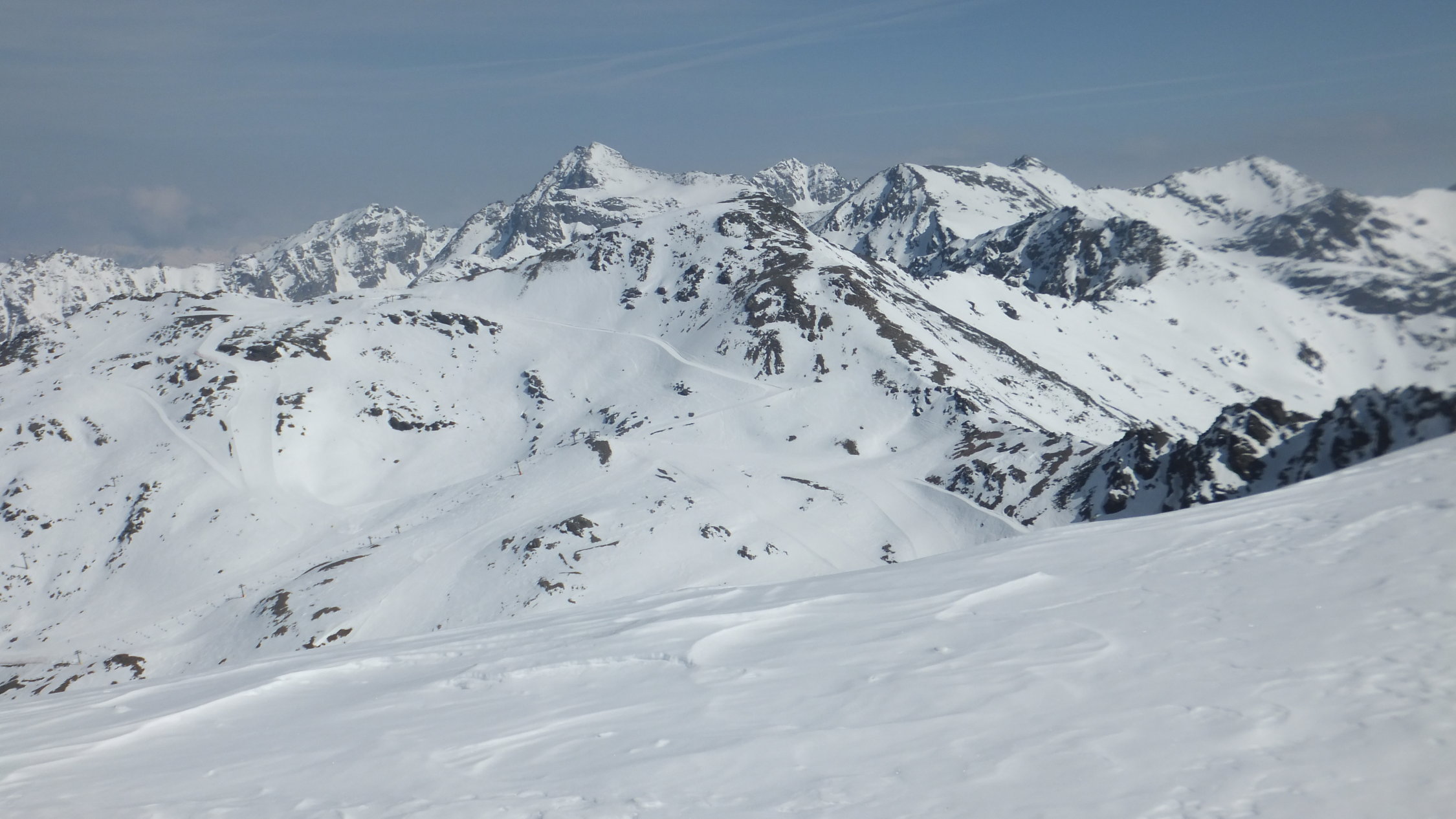 Der Westhang der Butzenspitze recht wenig Schnee und nur kleine Verbindungen zum Kessel unterhalb. Deshalb die Querung zum Ostgrat der Eisseespitze (war die schlechtere Alternative). Suldengletscher gut zu fahren. Die Abfahrt vom Madritschjoch war trotz der Wärem recht gut. Teilweise jedoch mit einigen sumpfigen Passagen.