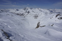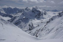 Wir sind beim Rückweg ca. 150hm zum oberen Ende des Liftgebietes wieder aufgestiegen, um nicht im unteren Ende der Abfahrt im Sulz zu versinken, und gut auf oder knapp neben den Pisten nach Bivio abgefahren.