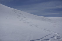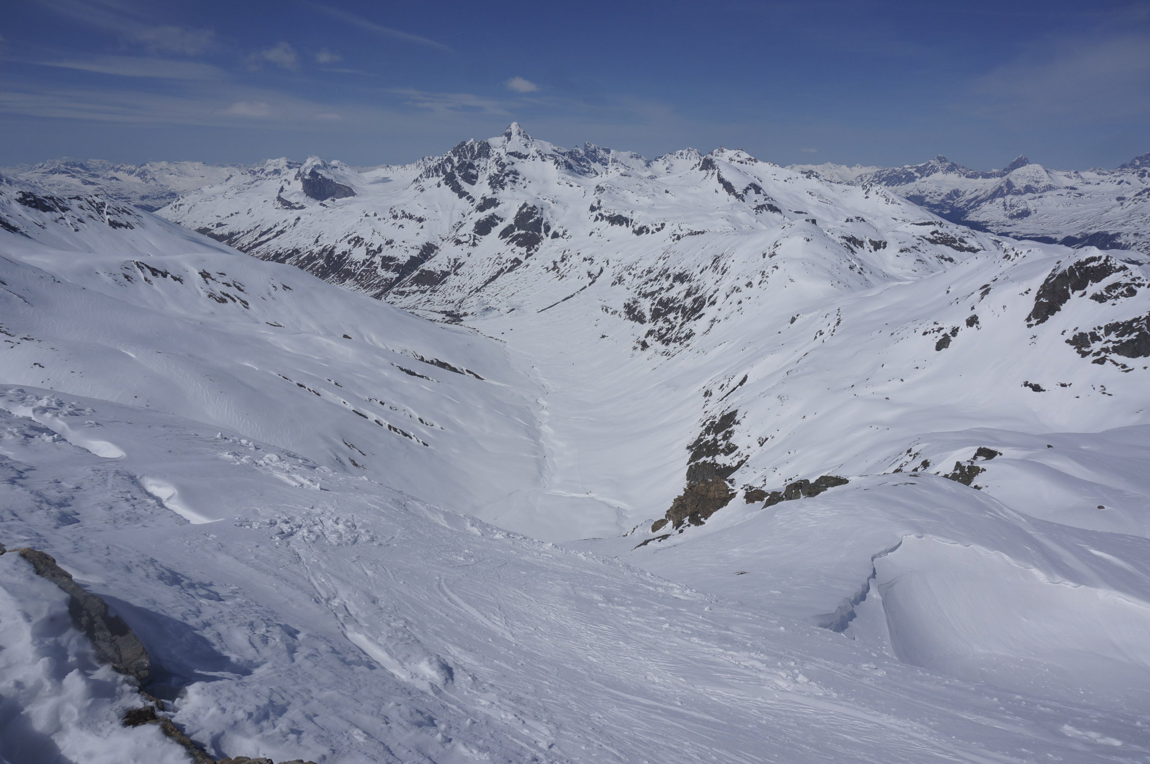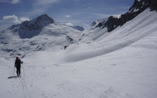 In der Schattseite der Gipfelflanke fand sich noch etwas pulverartiger Schnee, sonst Firn und Sulz, alles sehr gut fahrbar.