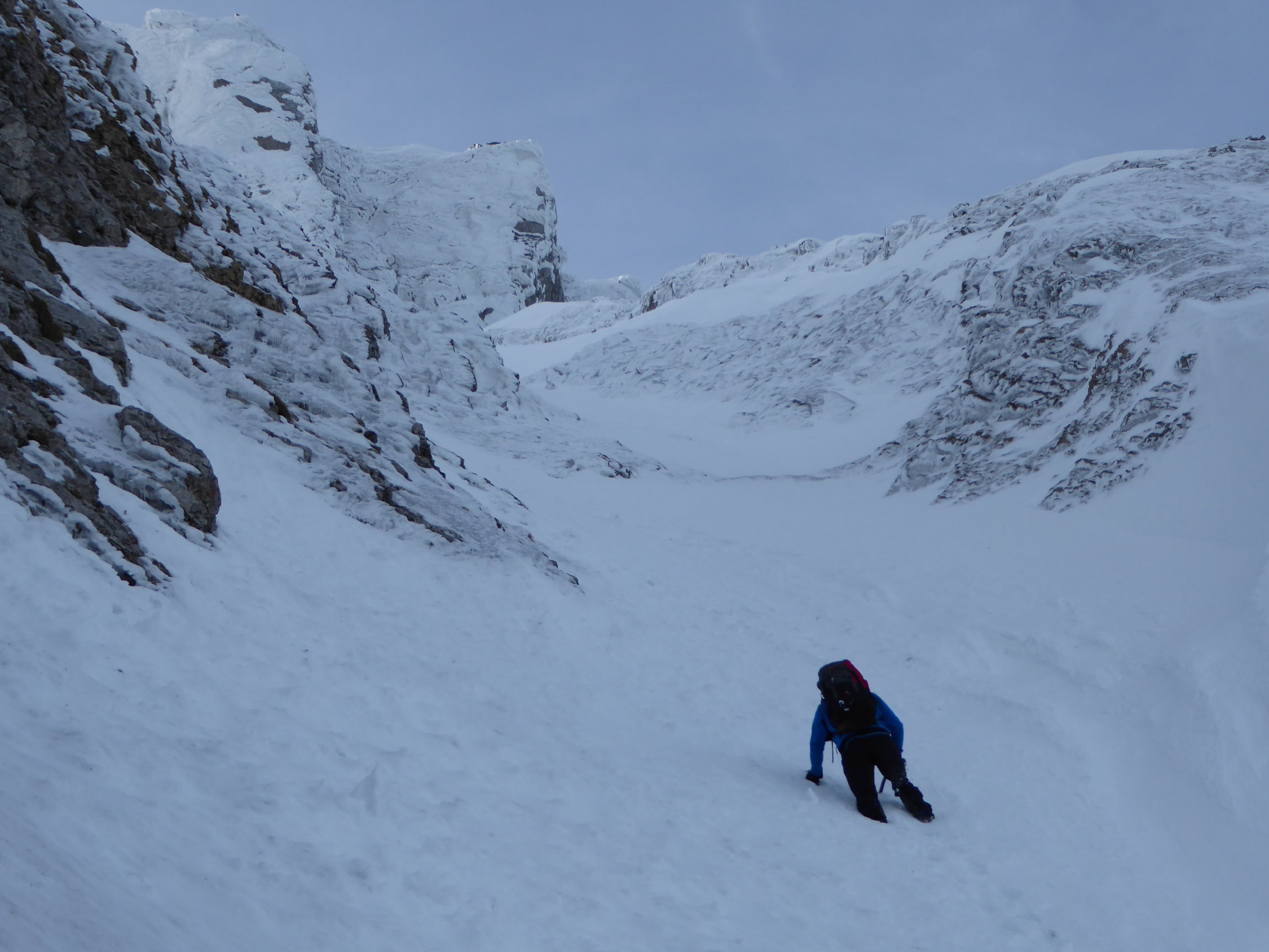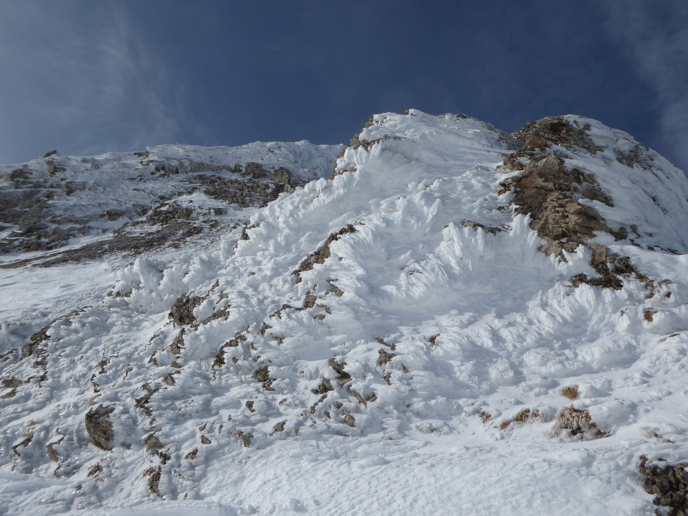 Super Verhältnisse mit Firn auf der Chammroute und nur in der Rinne unterhalb des Hühnerbergsattels vereinzelt Stellen mit tiefem Schnee. Der Grat zum Girenspitz weist aktuell patagonische Verhältnisse auf, macht aber richtig Spass. Wir sind zwei Aufschwünge vor dem Girenspitz ausgequert und haben die Gipfelplattform direkt via dem Blauen Schnee erstiegen. Bei den aktuellen Schneeverhältnissen gut machbar aber auf den letzten 30 (Mixed-)Metern kaum absicherbar.