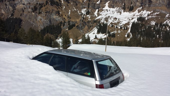Die Strasse hoch zum Hotel ist noch teilweise schneebedeckt und eisig. Wir haben uns vom Hotel abholen und runter bringen lassen mit so einem Spezialgefährt auf Ketten. Wir haben oben übernachtet. Kostet aber auch dann noch CHF 10 pro Fahrt und Person.