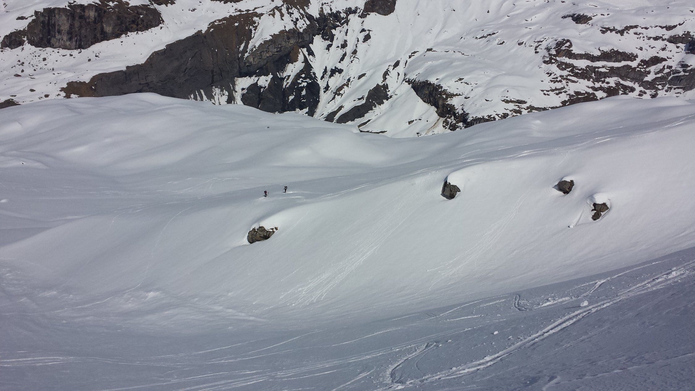 Auf der Abfahrt dann alle Schneearten von Pulver über Hart zu Deckel und weiter unten dann netter Sulz aber zum Glück kein Sumpf. Sind bei der Abfahrt den Hütten-Sommerweg über "Uf der Wart" gefahren. Ging gut, würden aber im Aufstieg trotzdem den Hohtürligrat empfehlen.